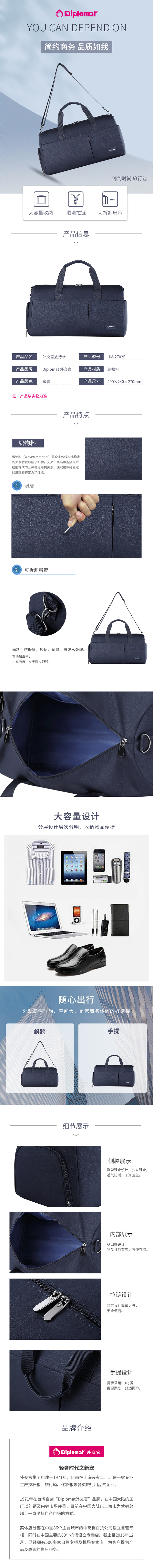 商品名称:外交官 Diplomat 旅行袋-藏青色 HM-2702E(单位:个) 深蓝色