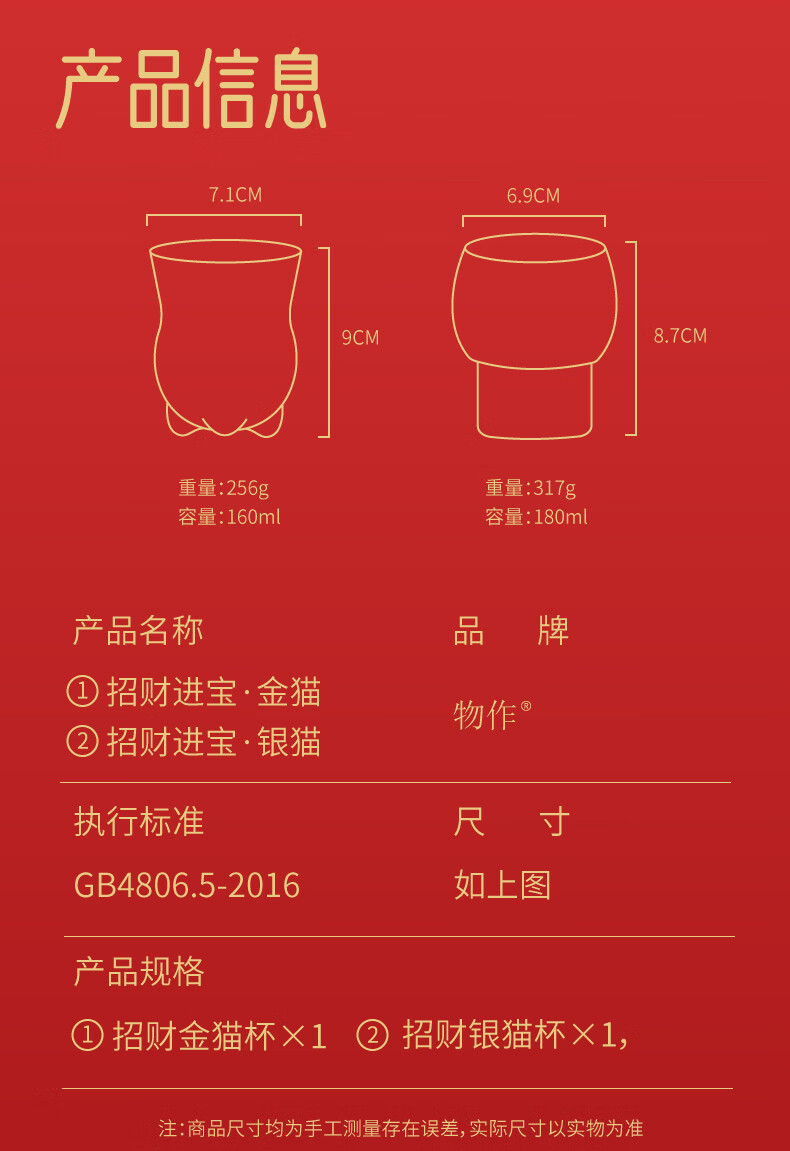 商品名称:山重山物作招财银猫杯·两件套(单位:套) 银色
