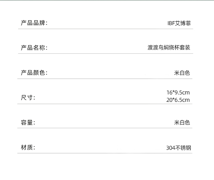 商品名称:IBF艾博菲-渡渡鸟·焖烧杯套装 IBF2217BH 420+500ML 套 白色