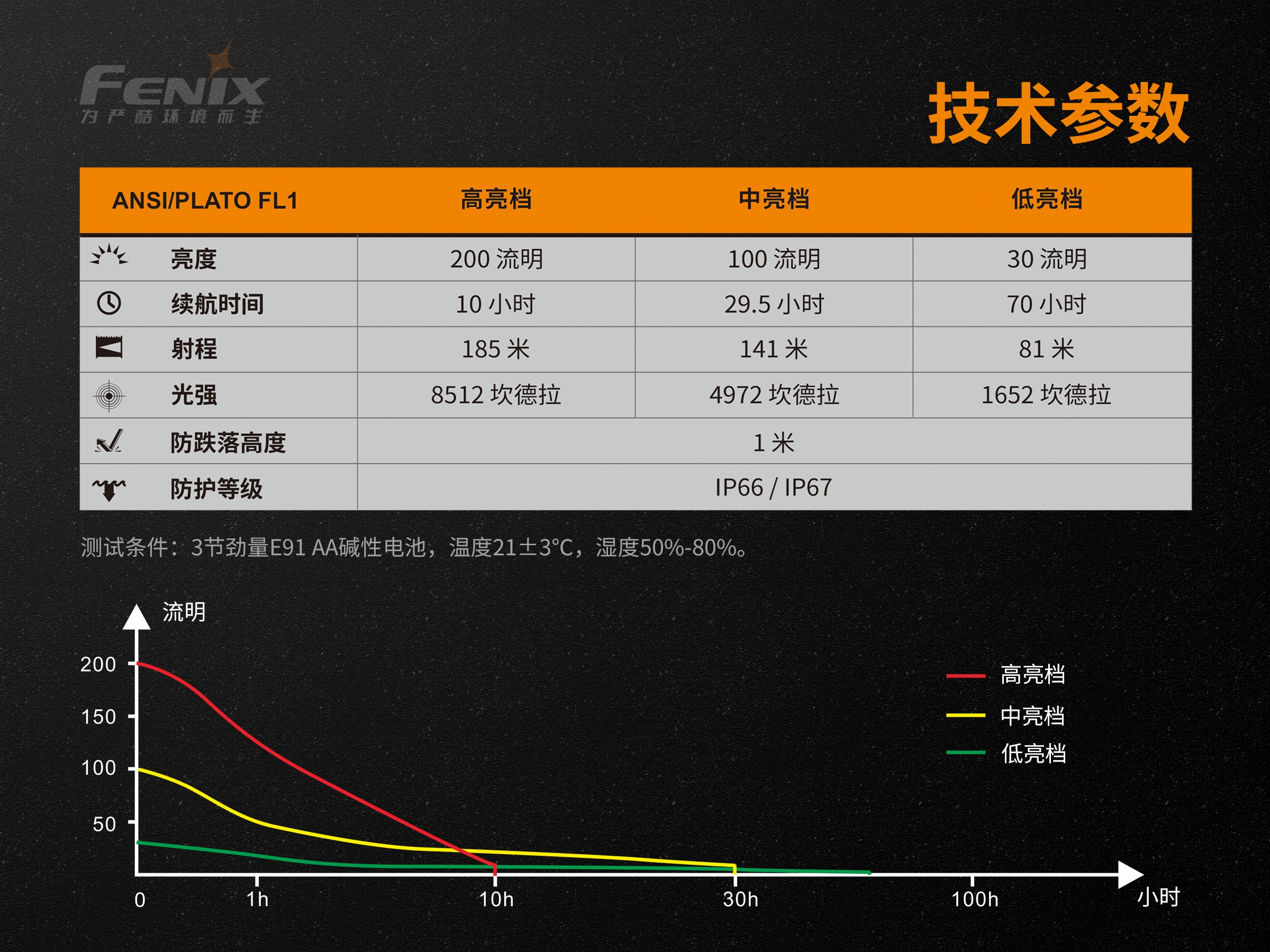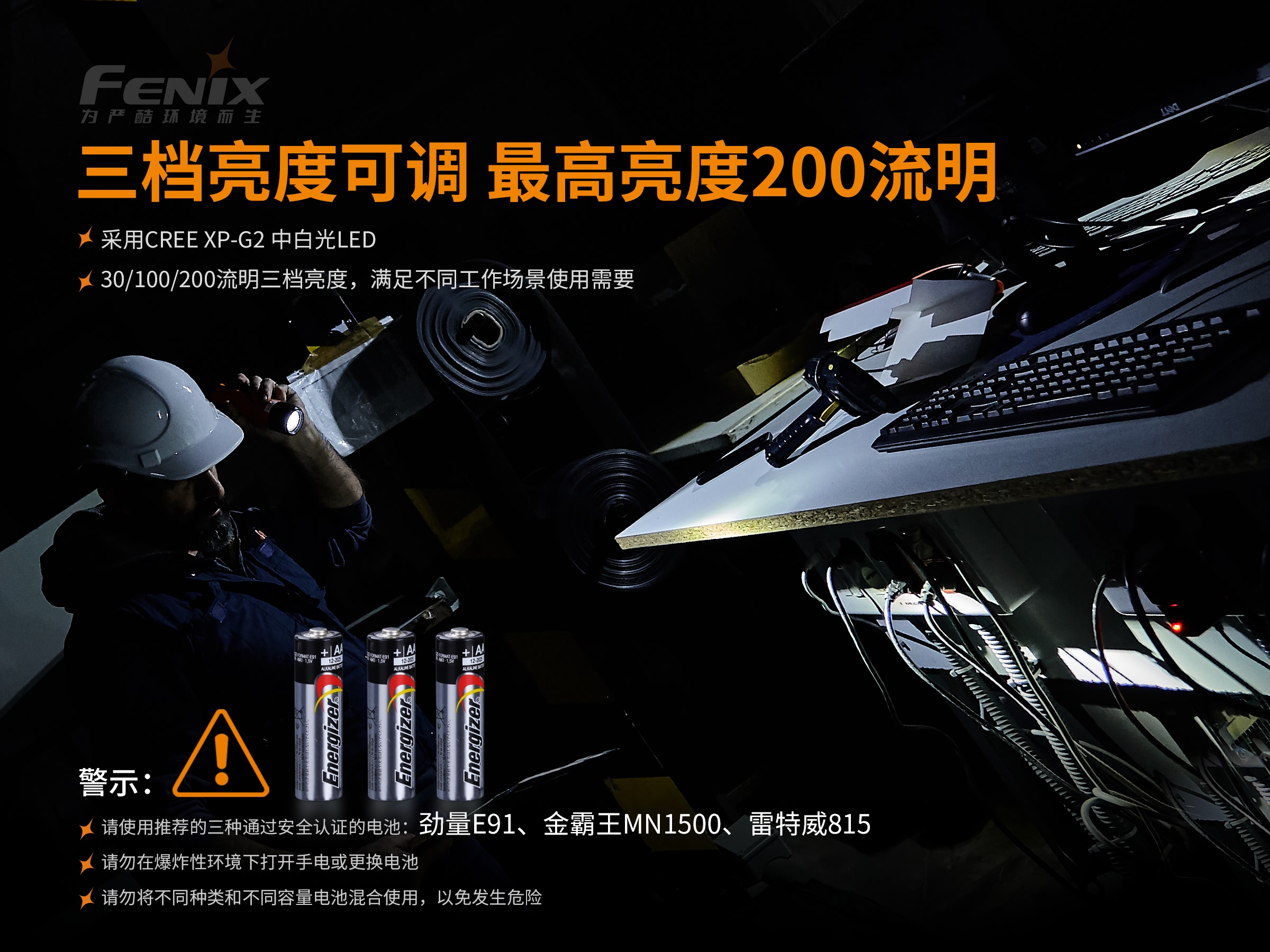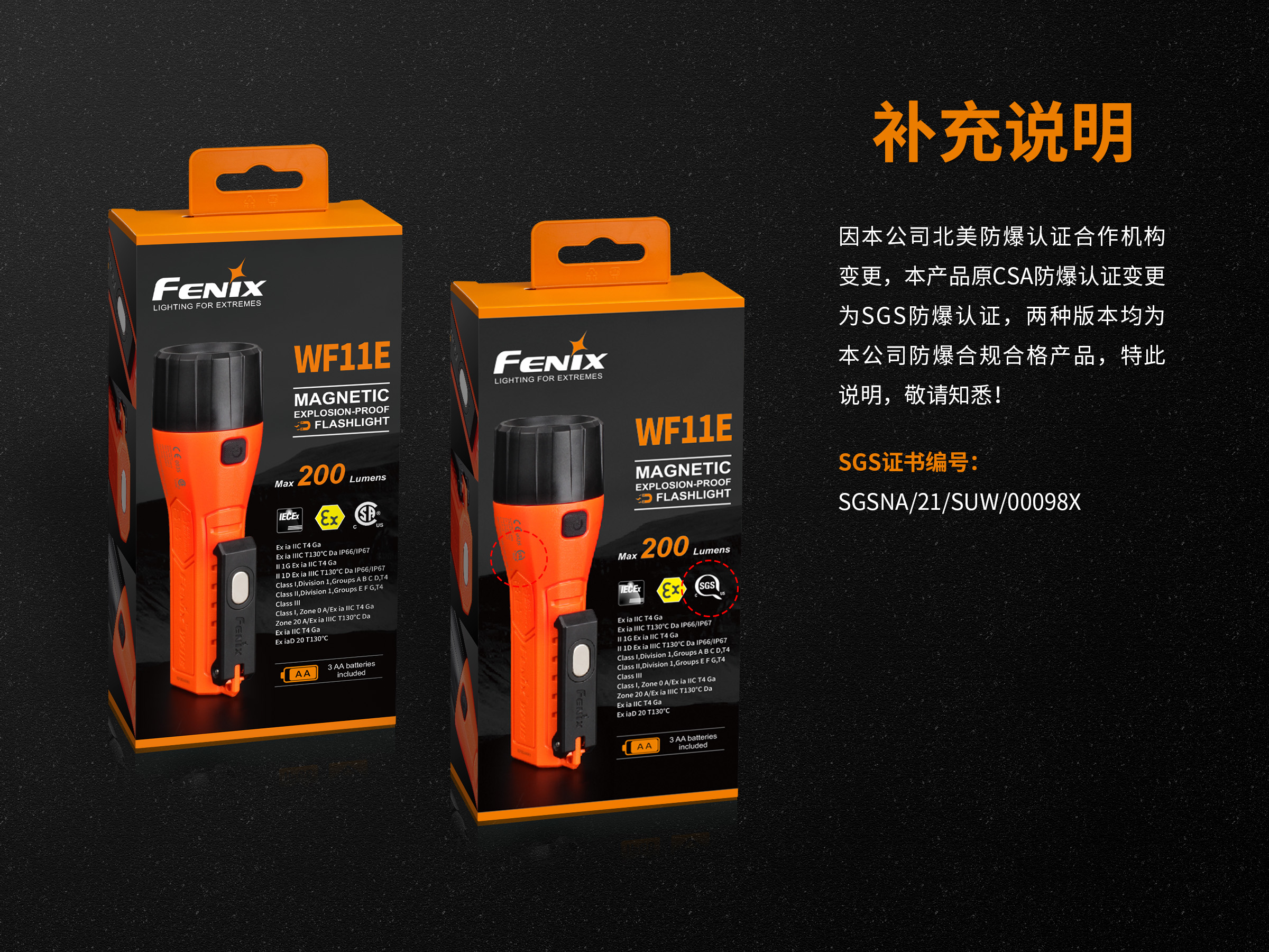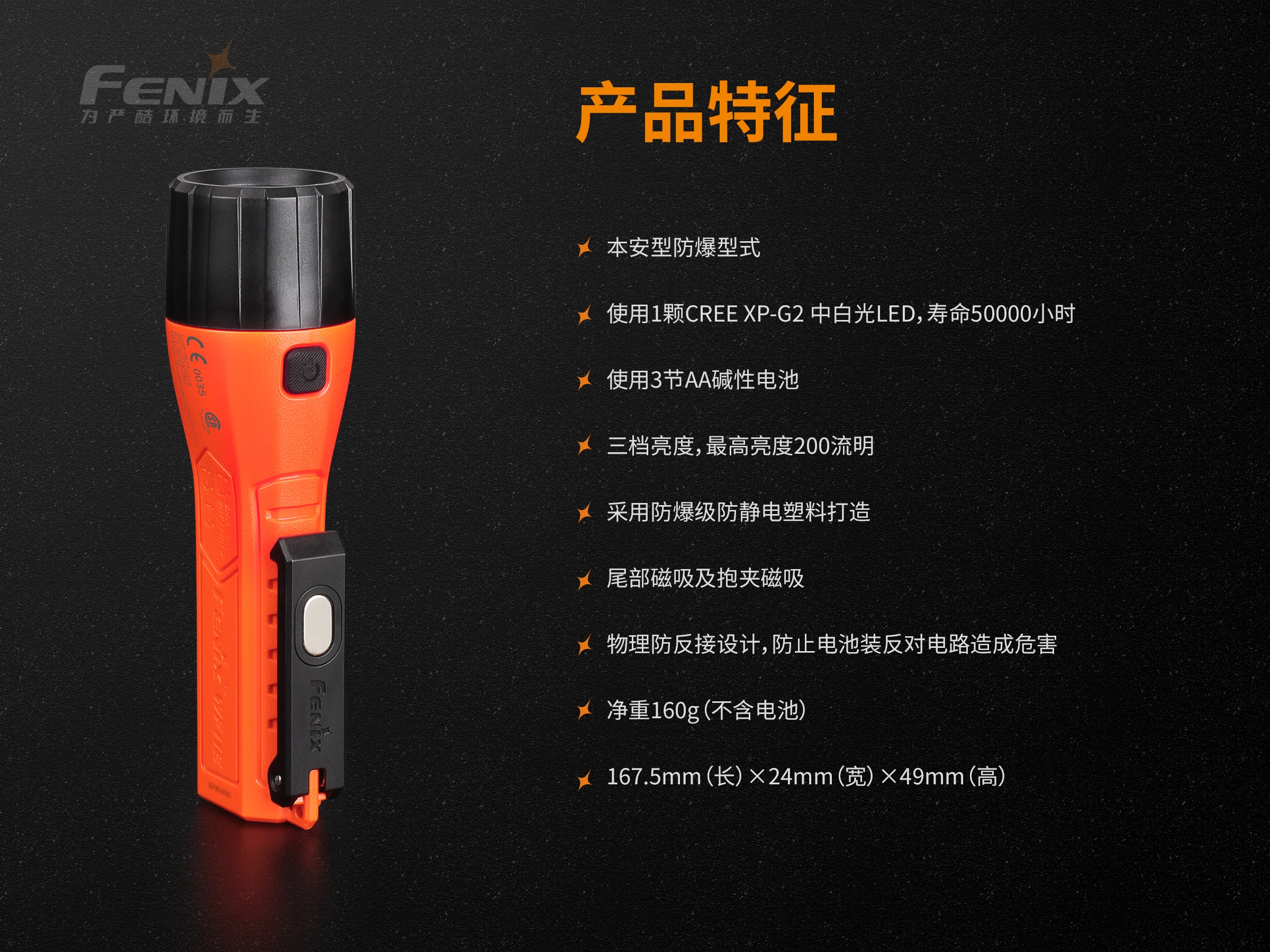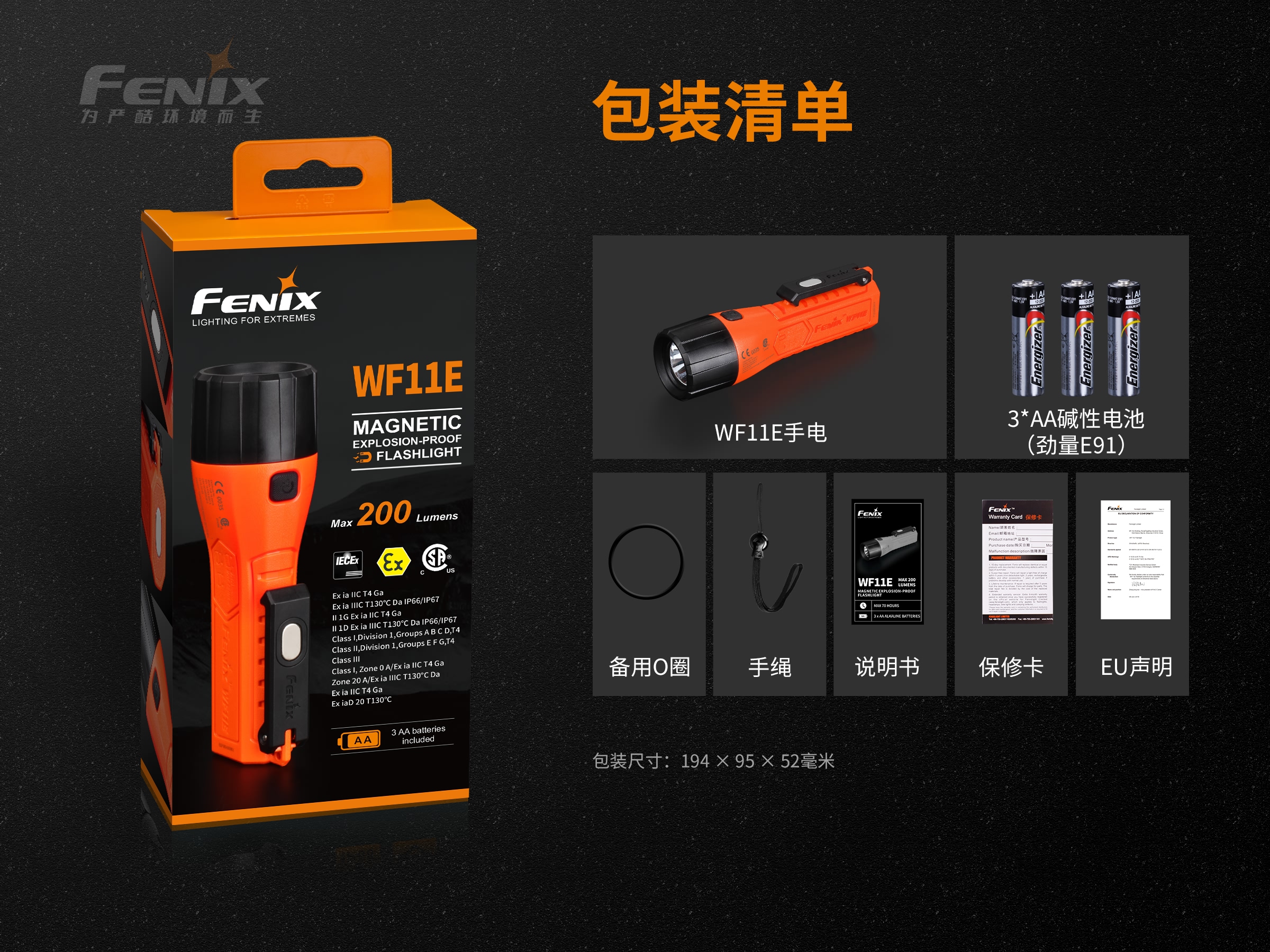 商品名称:Fenix WF11E磁吸防爆手电(橙色)200流明185米射程 橙色