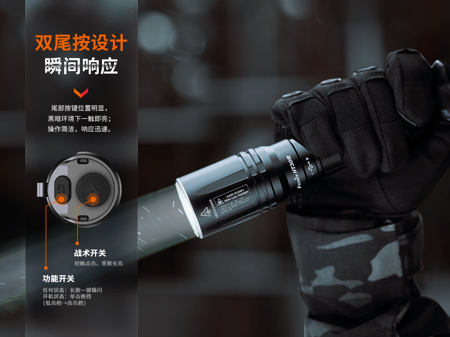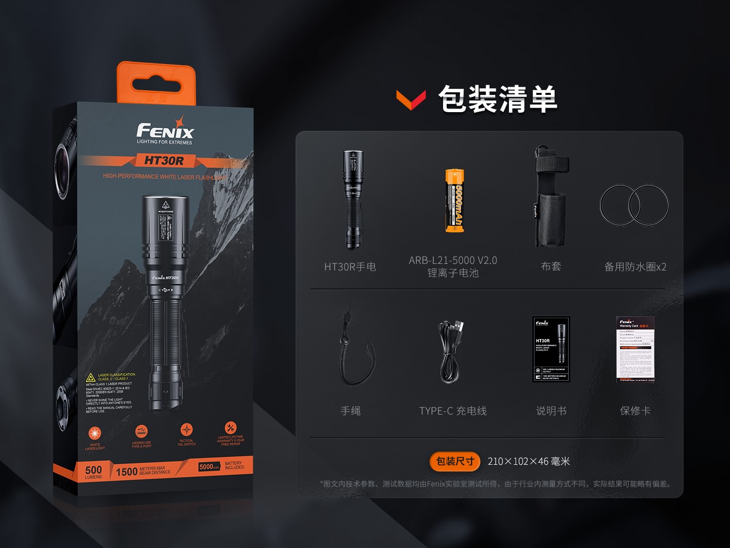 商品名称:Fenix HT30R白激光战术手电500流明1500米远射 曜石黑