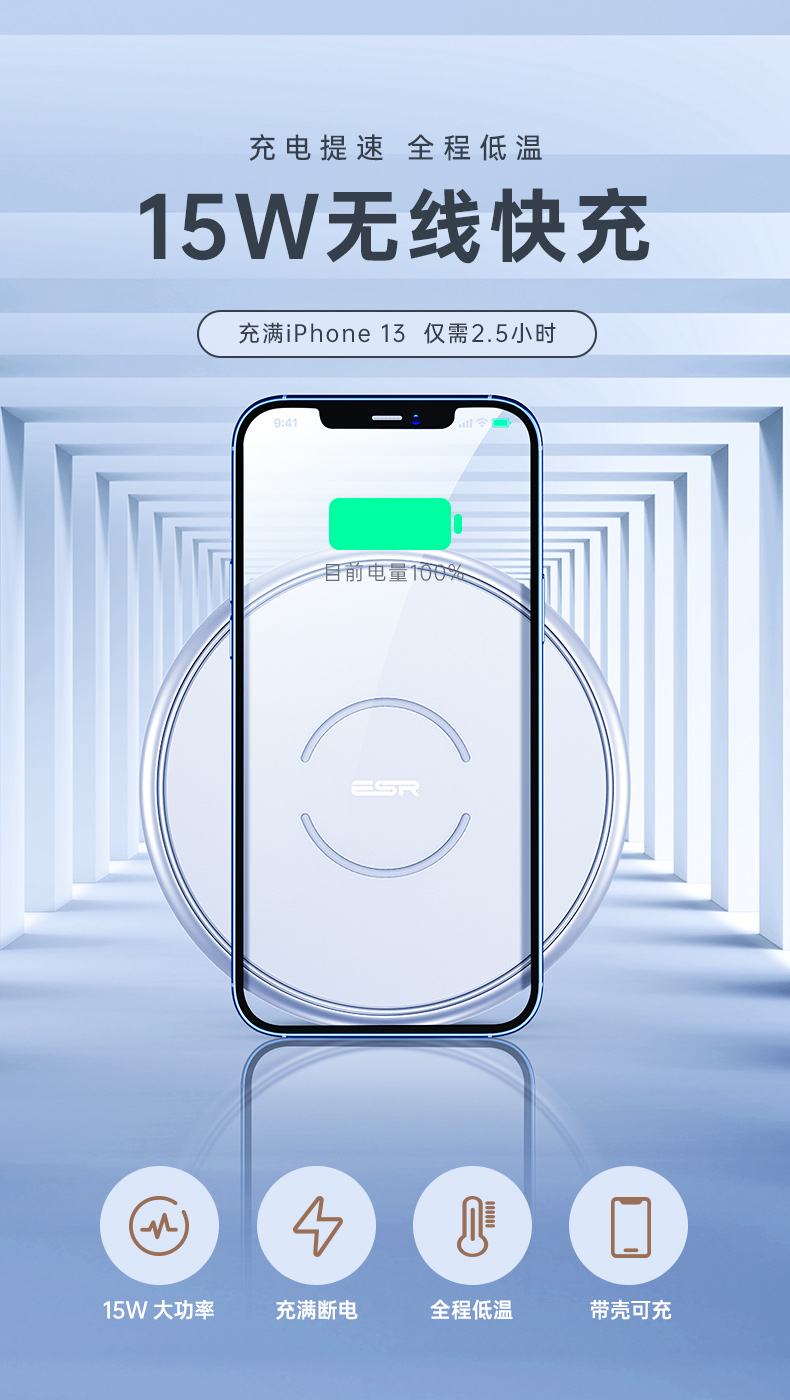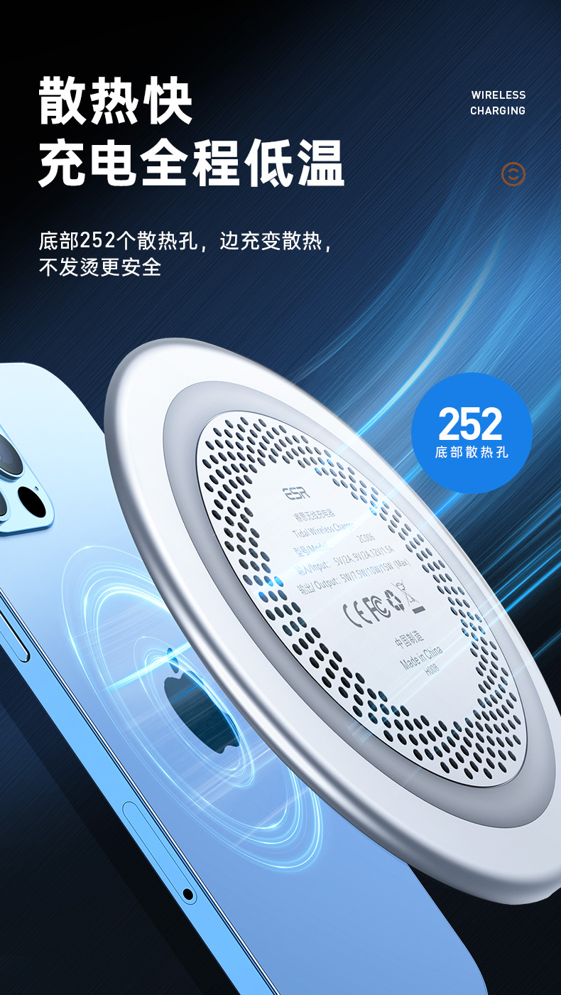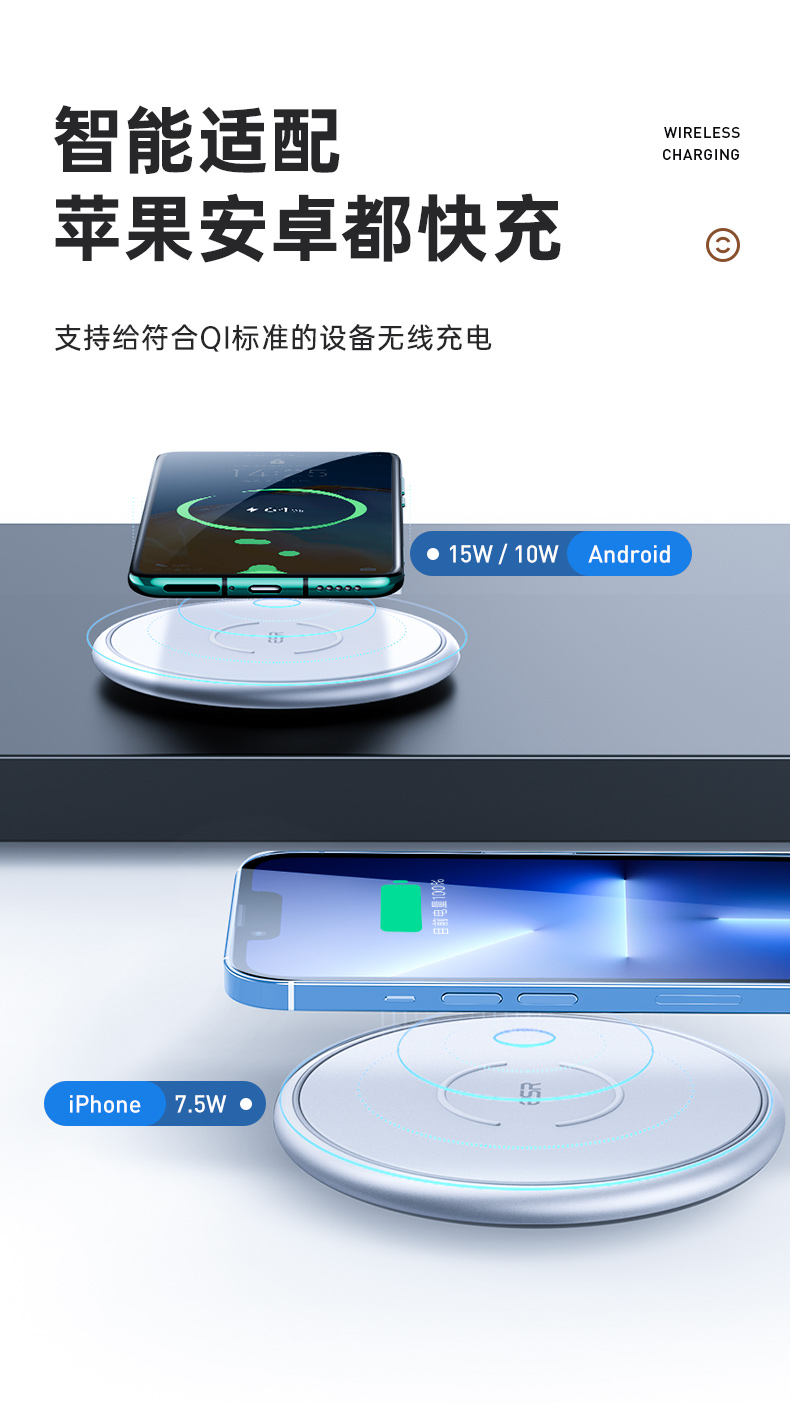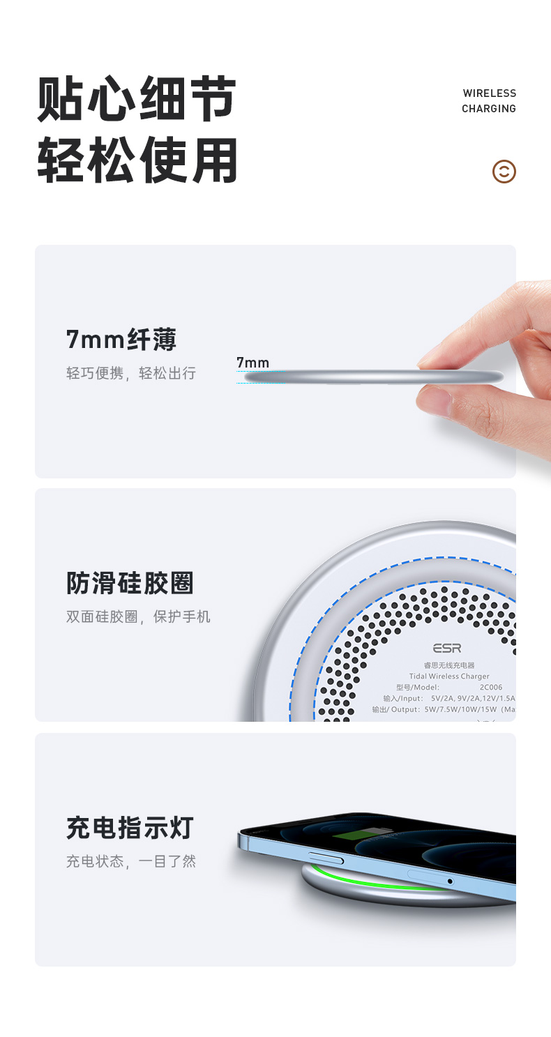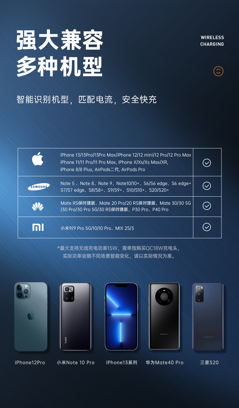 商品名称:亿色 睿思苹果无线充电器15W快充通用iPhone13/14ProMax/14plus/12/Mini/SE3/2小米9一加华为三星手机无限充电板*1/件 石墨锖