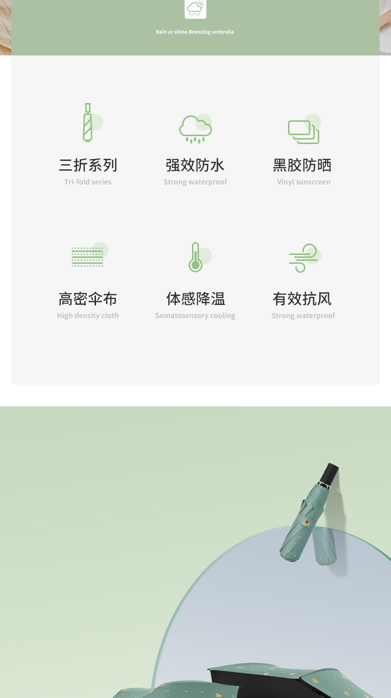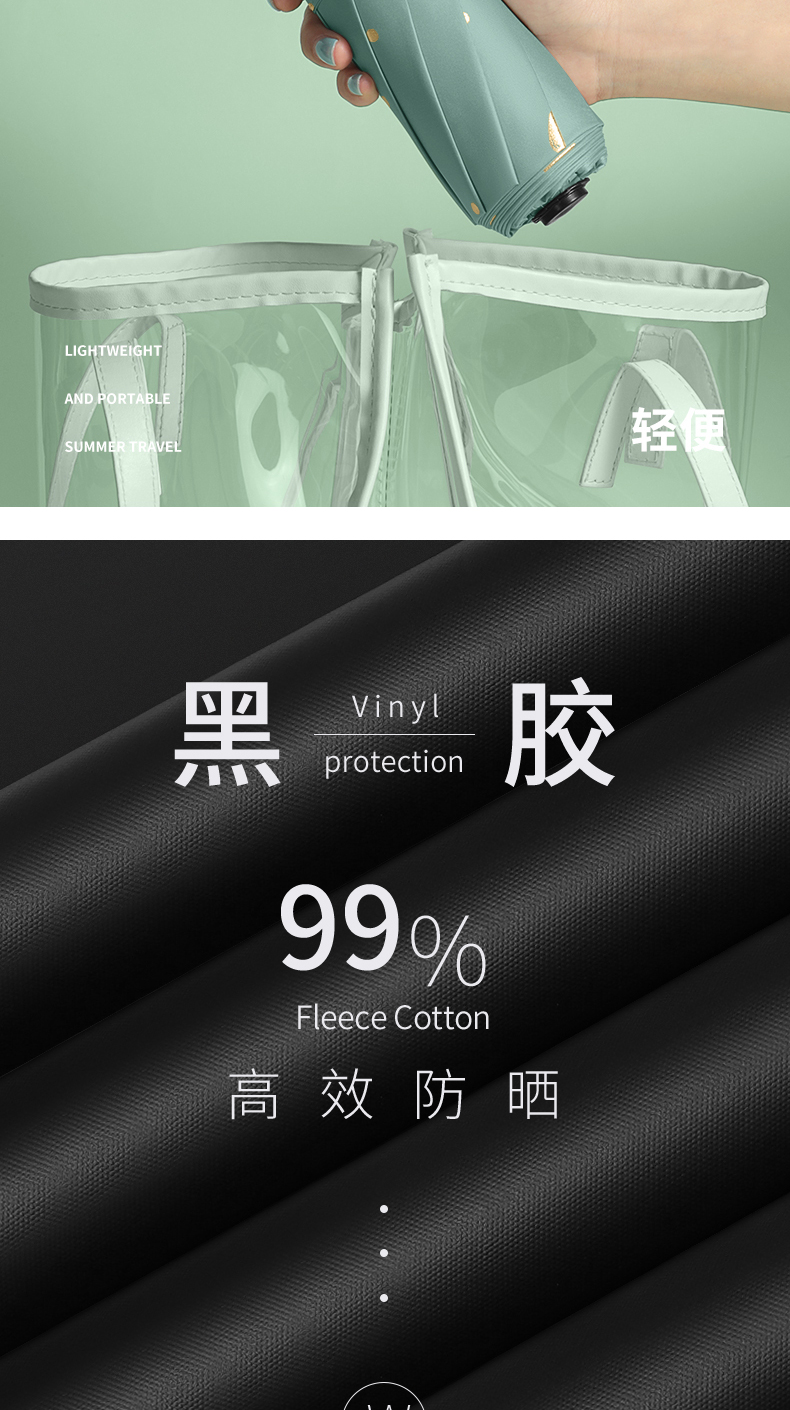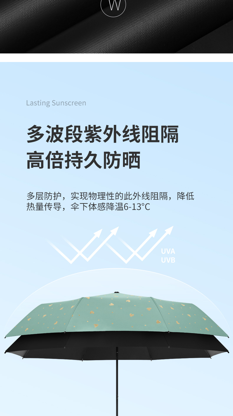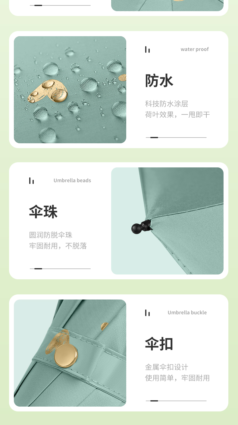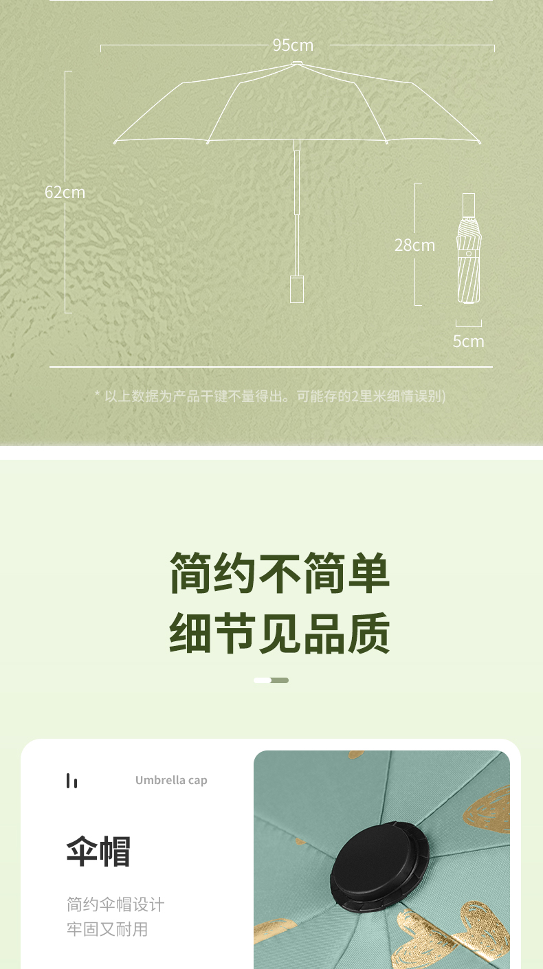 商品名称:美度ins烫金爱心遮阳伞女森系折叠晴雨伞三折伞M3101 56cm*8k/98cm(单位:把) 薄荷绿