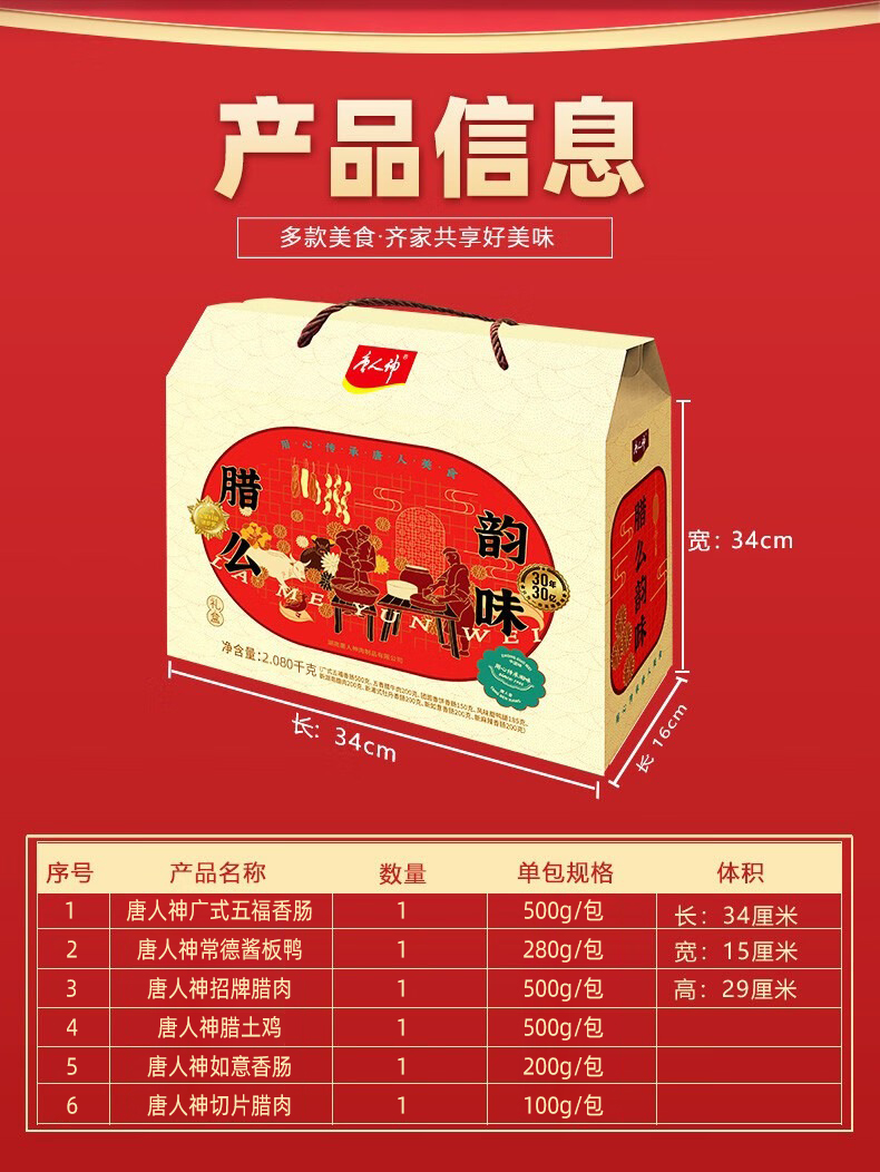 商品名称:唐人神熟食腊味礼盒2080克(偏远地区不发货) 金黄色