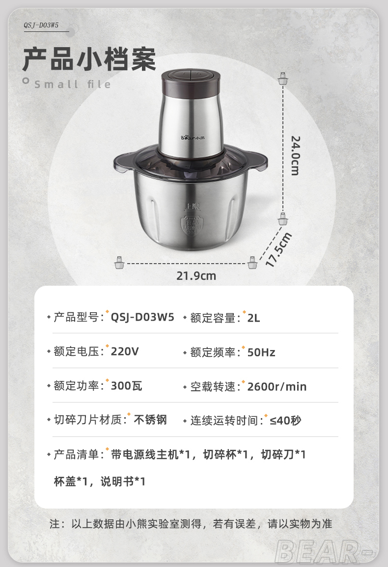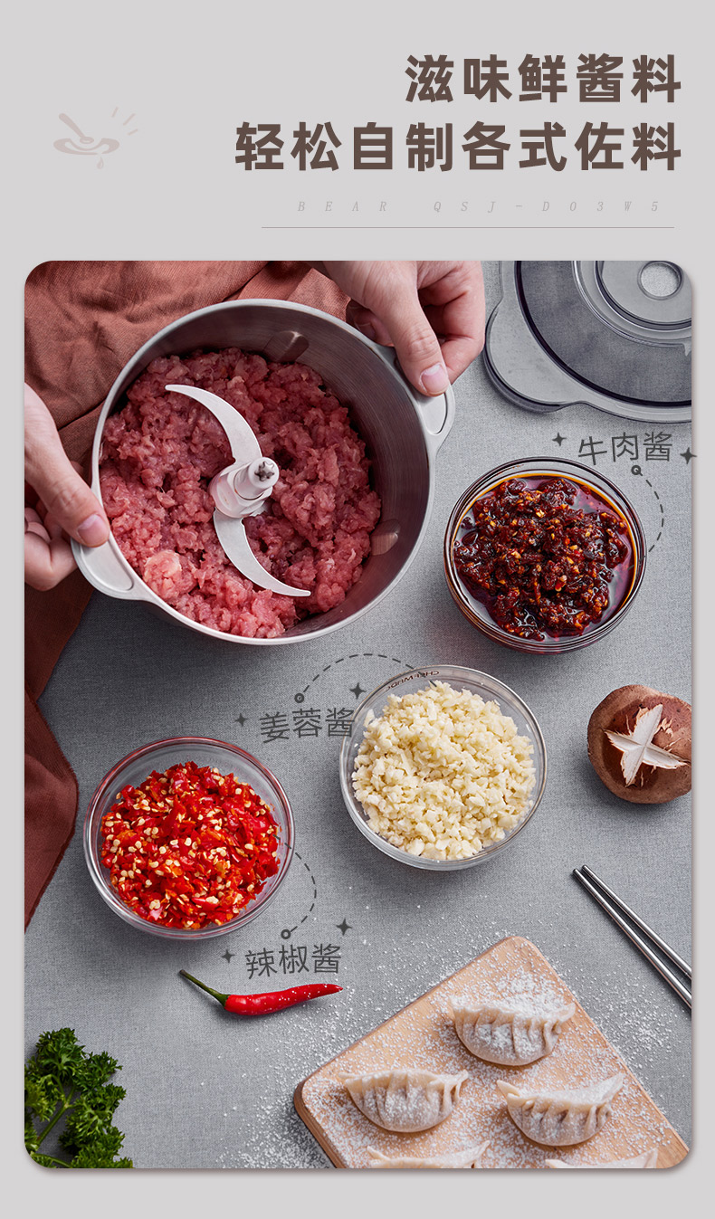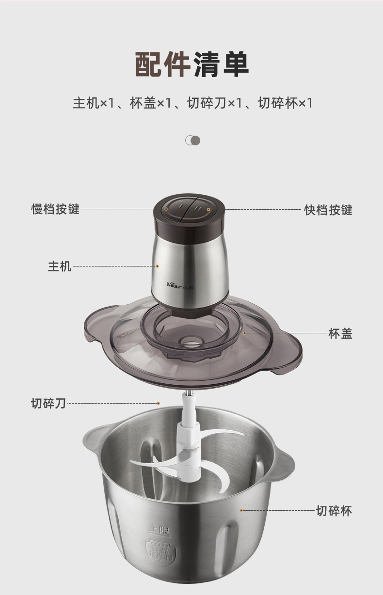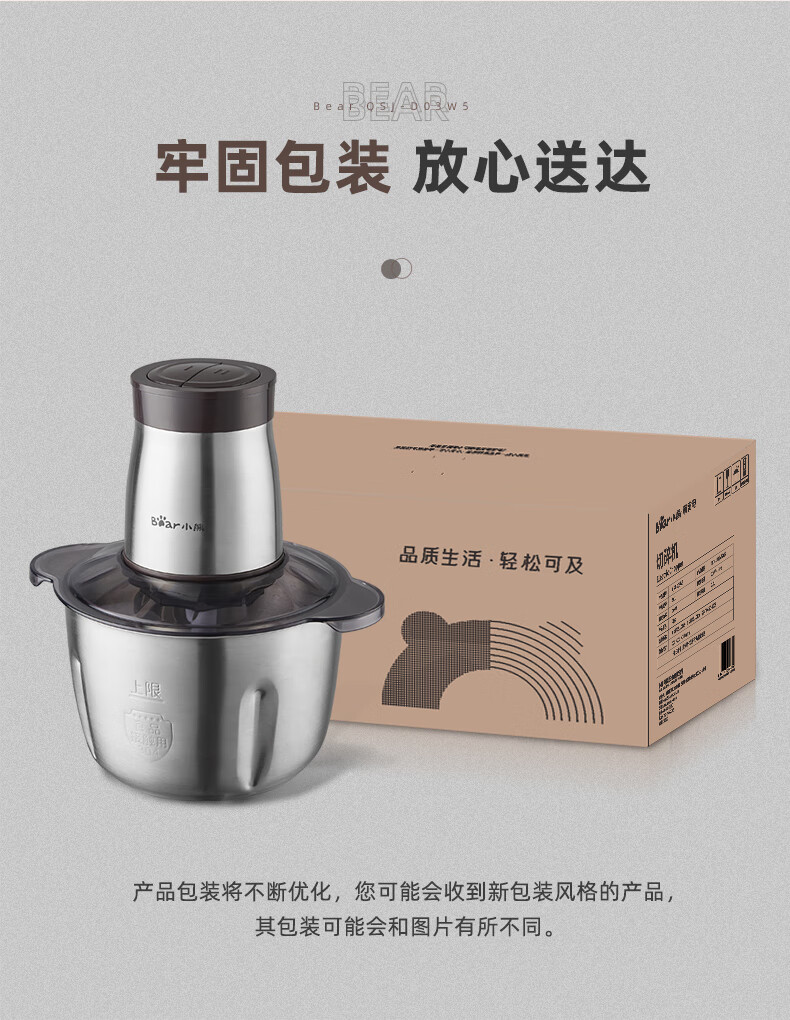商品名称:小熊(Bear)2L绞肉机 不锈钢碗 QSJ-D03W5/台 褐色