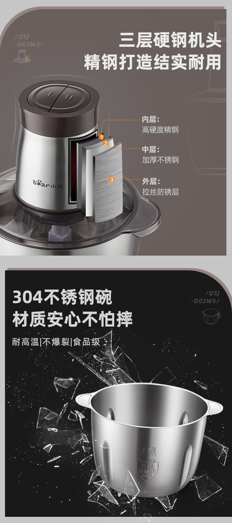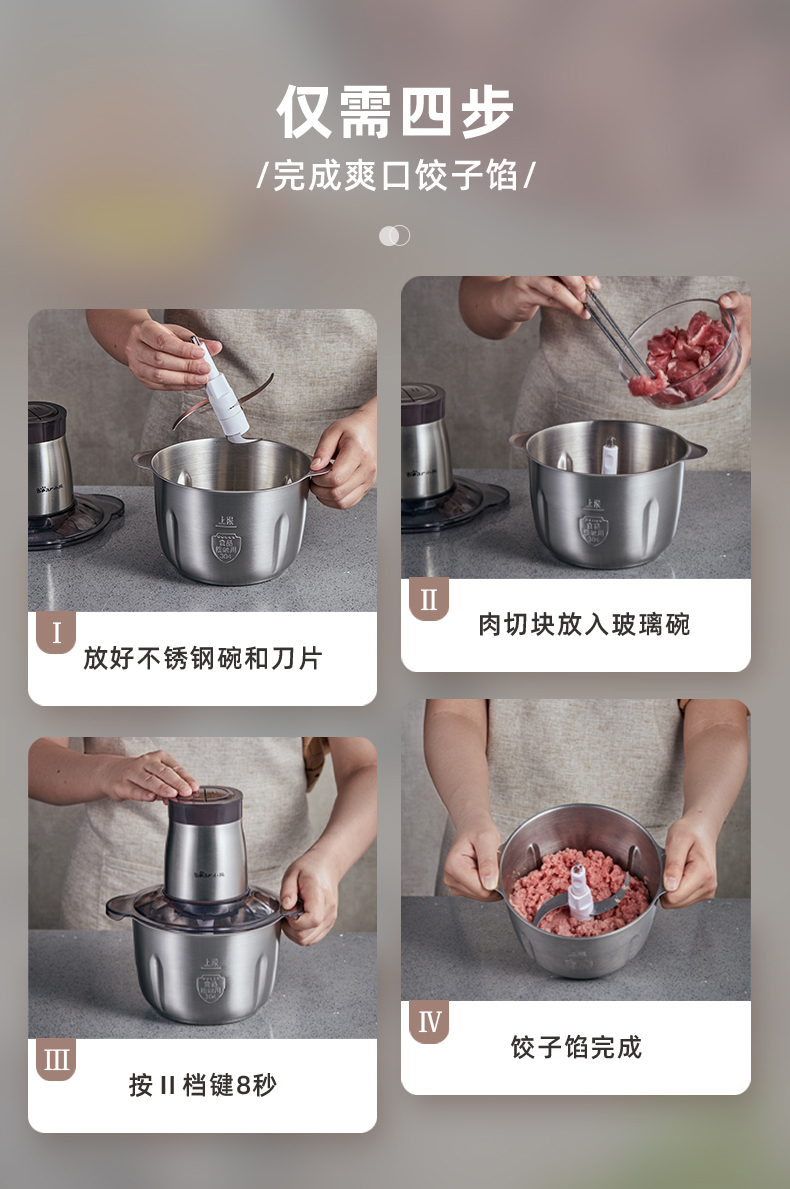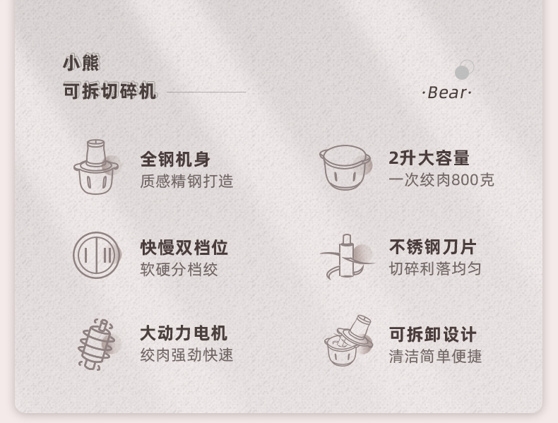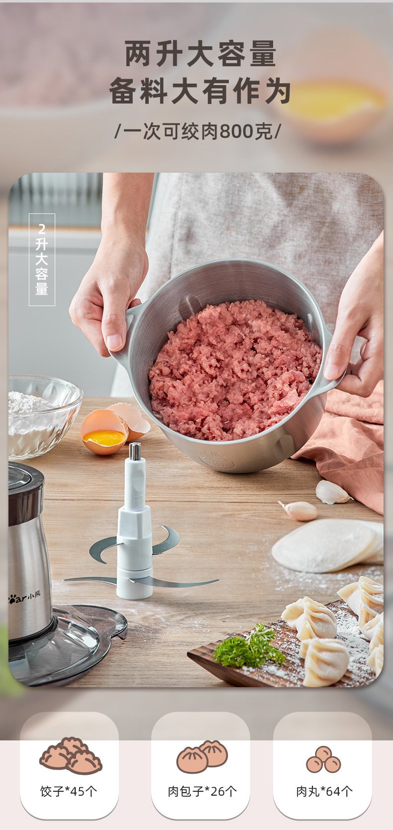 商品名称:小熊(Bear)2L绞肉机 不锈钢碗 QSJ-D03W5/台 褐色