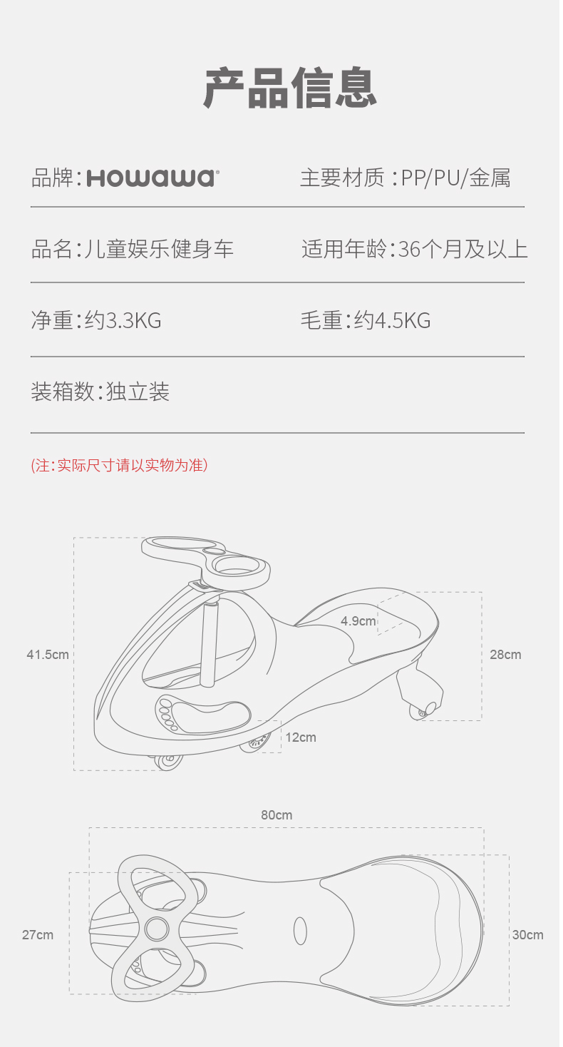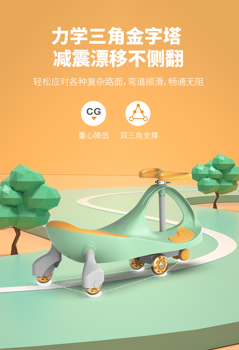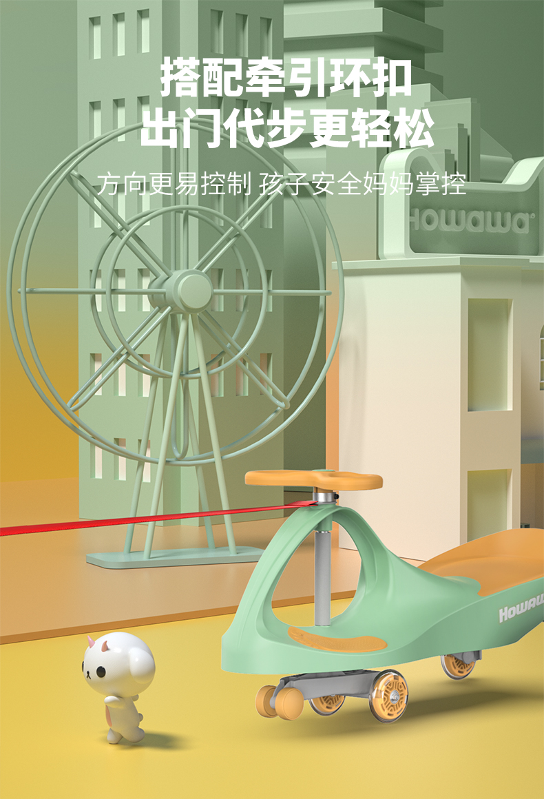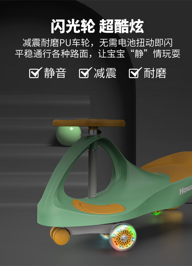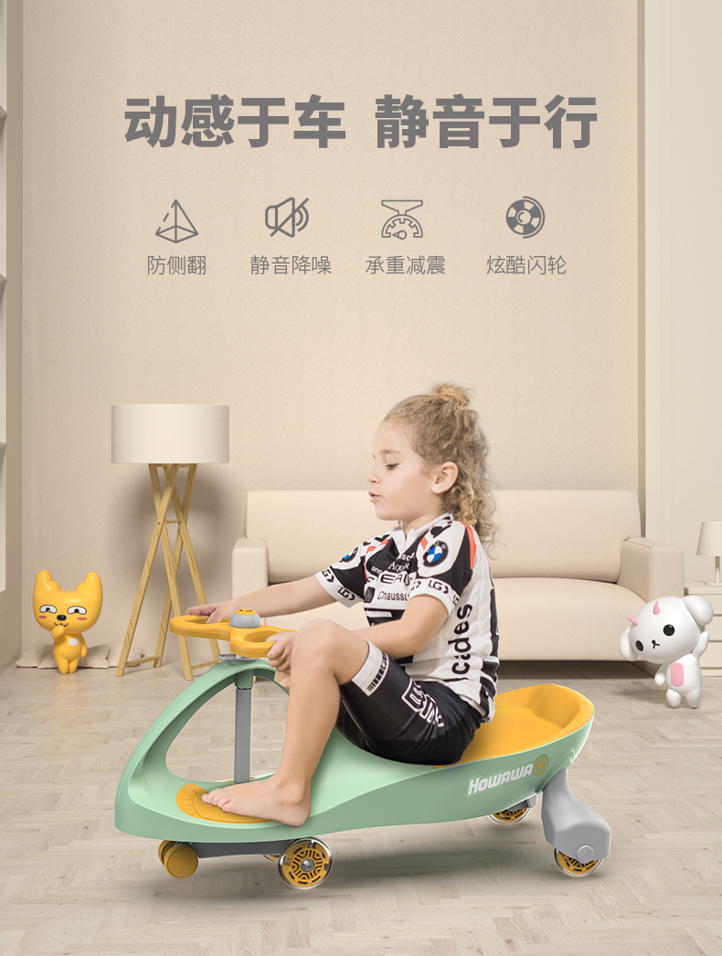 商品名称:howawa儿童扭扭车溜溜车1-3岁防侧翻滑滑车万向轮玩具摇摆妞妞车158-13-E(单位:台) 青柠黄