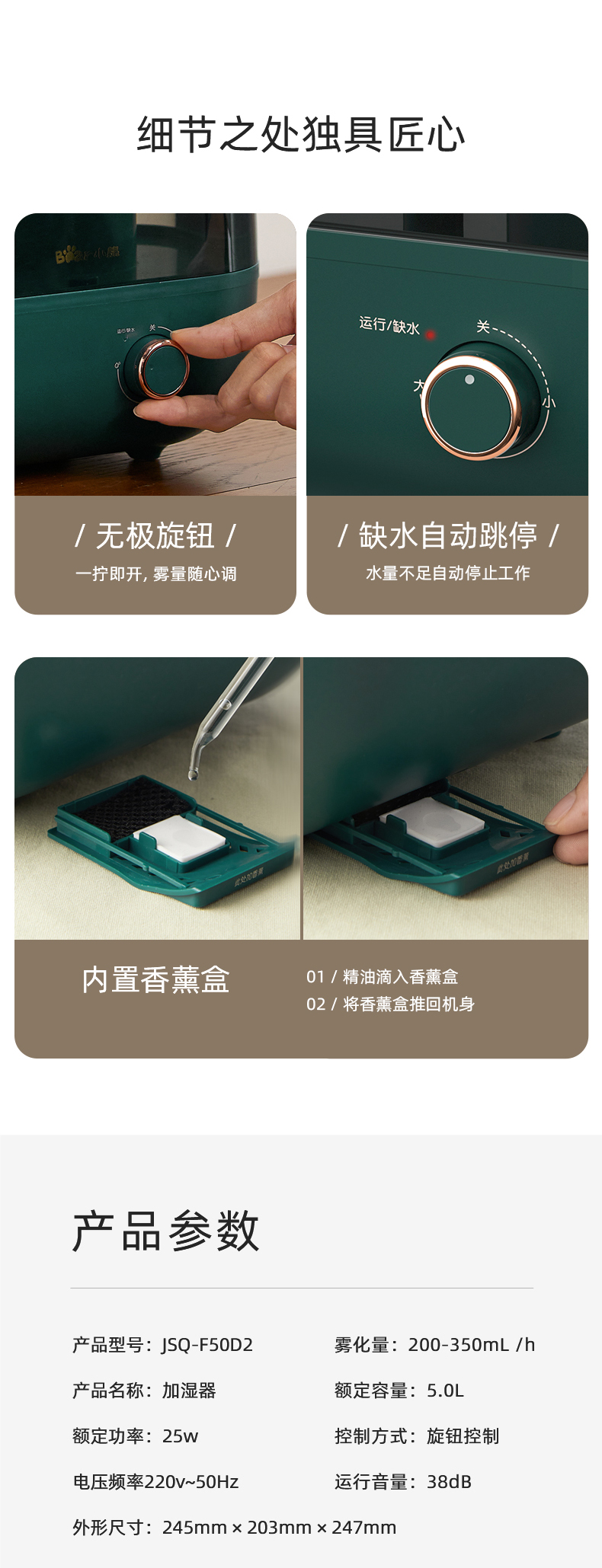 商品名称:小熊(Bear) 加湿器5L 香薰 JSQ-F50D2/台 军绿色