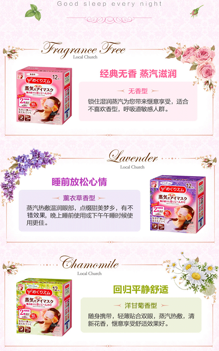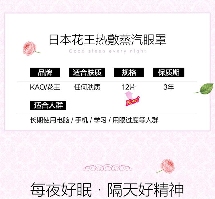 商品名称:花王(KAO)蒸汽眼罩12片 无香味 盒 粉色