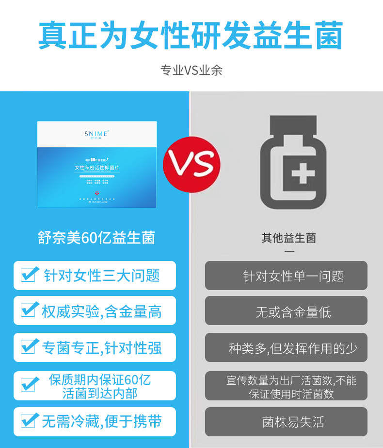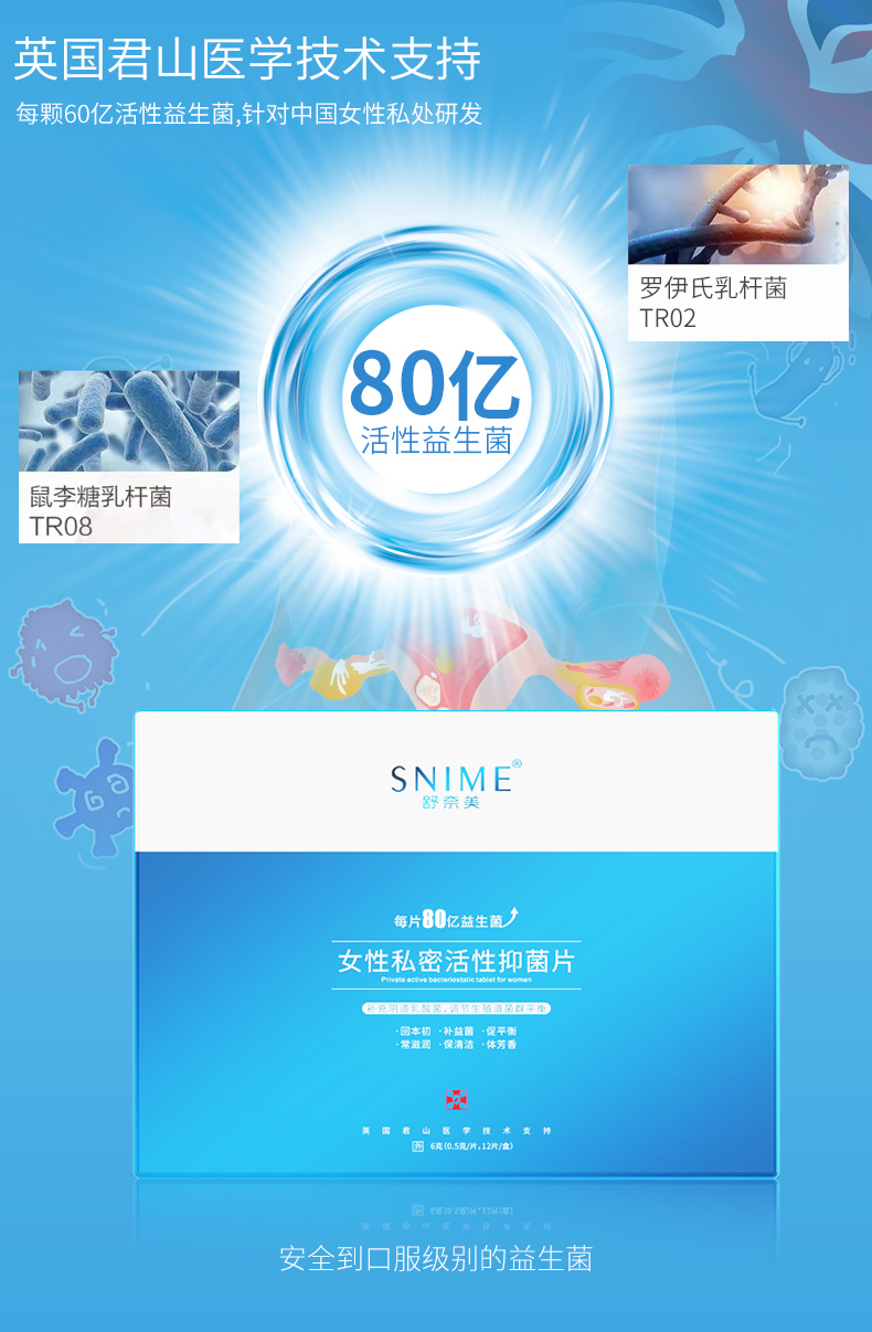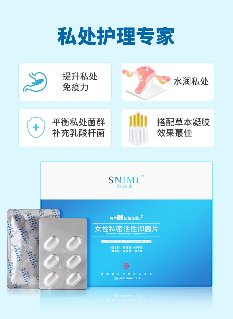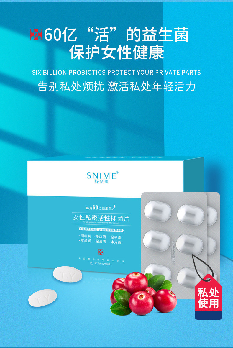 商品名称:舒奈美 女性私处专用妇科益生菌片 6片/盒