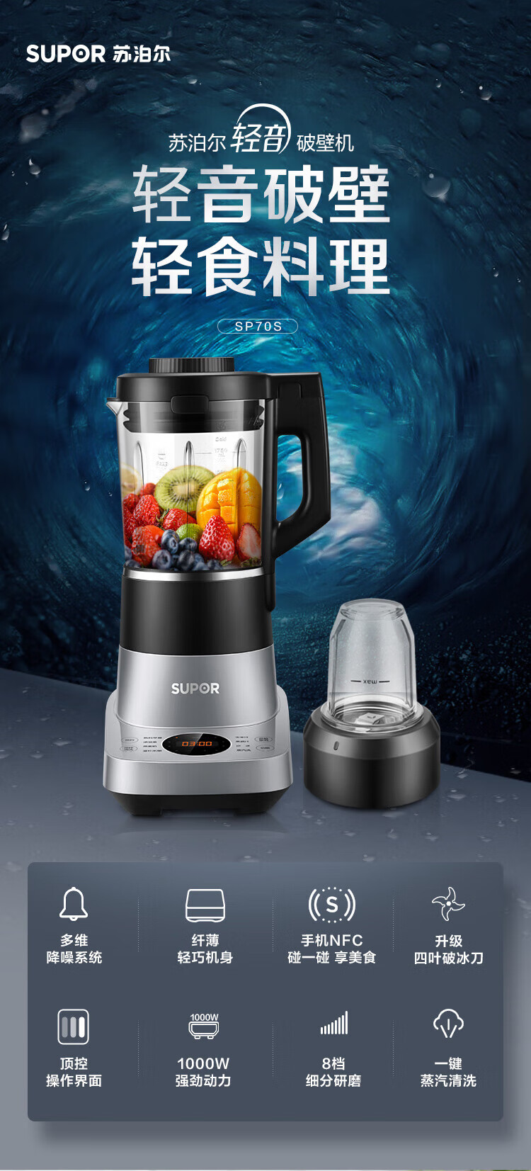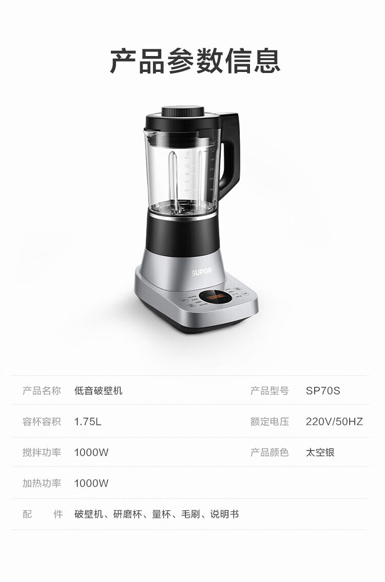 商品名称:苏泊尔(SUPOR)破壁机加热搅拌多功能 SP70S 台 银色
