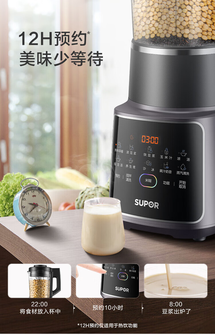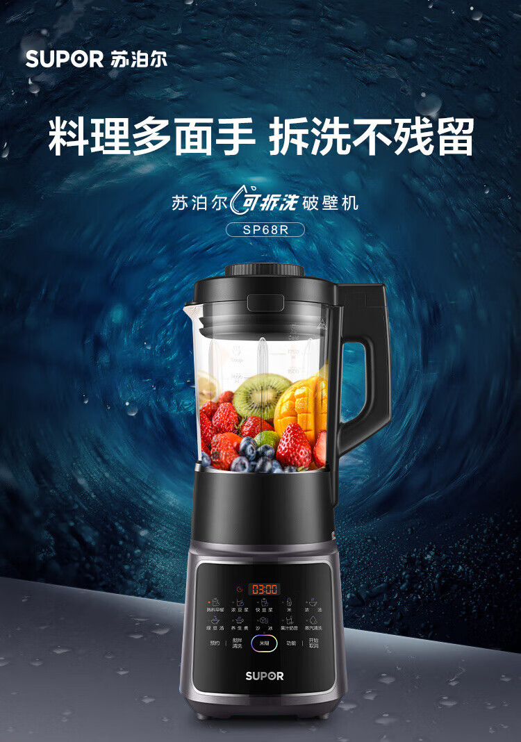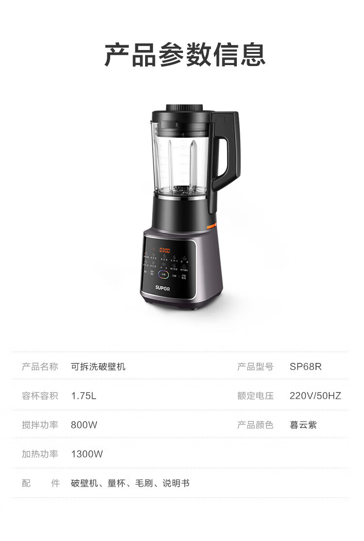 商品名称:苏泊尔(SUPOR)可拆洗轻音破壁机家用智能预约加热破壁料理机SP68R(单位:台) 黑色