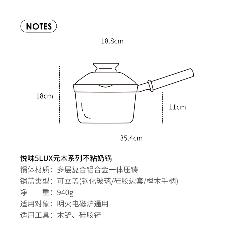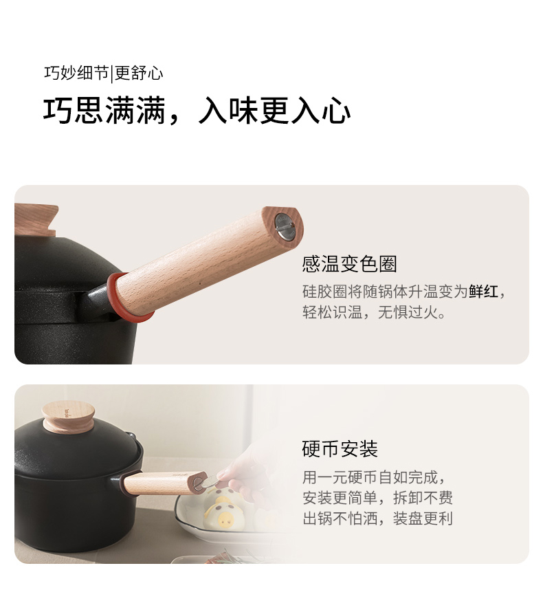 商品名称:悦味元木奶锅 悦味元木系列小奶锅 黑色
