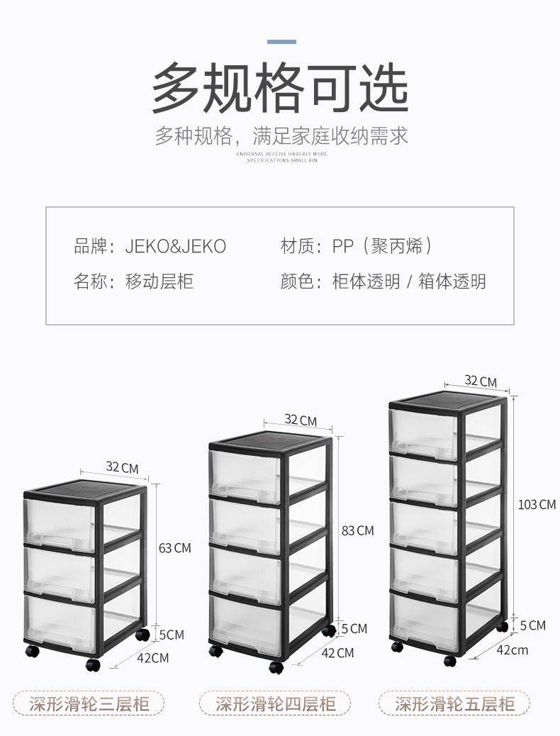 商品名称:JEKO&JEKO 可移动深浅五层柜 透明黑 1只 纸箱包装SWB-5213(偏远地区不发货) 黑色