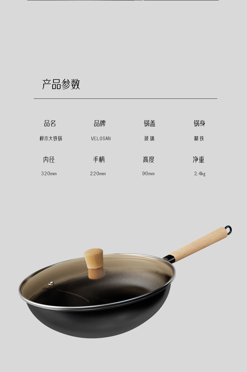 商品名称:VELOSAN温仑山 中华大铁锅 32CM VE010(单位:个) 黑色