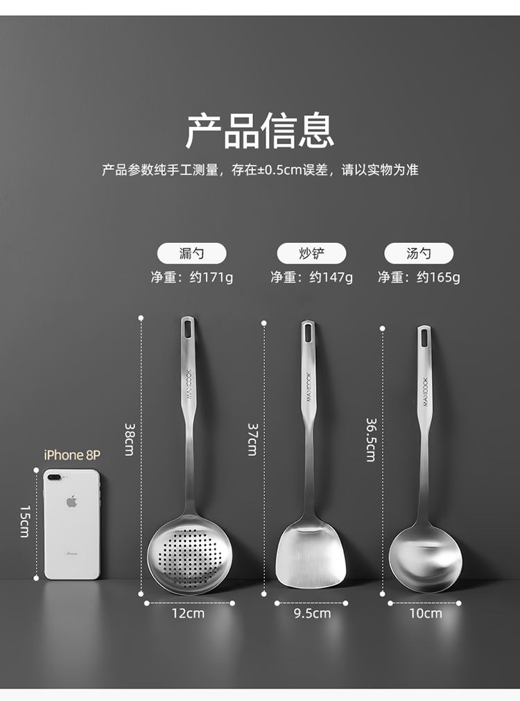 商品名称:美厨 惠美系列不锈钢铲勺三件套 MCCU0690 不锈钢色