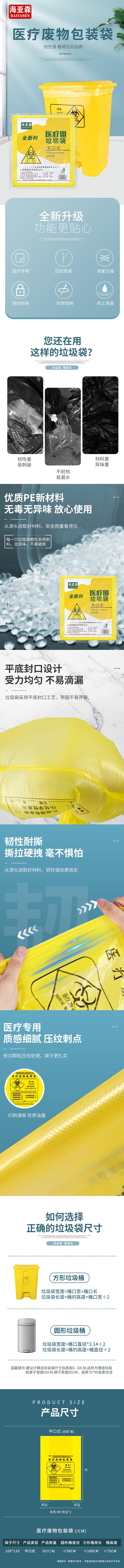 商品名称:海亚森(HAIYASEN)TK-8038 平口式医疗废物包装袋100cm*110cm50只/包 黄色