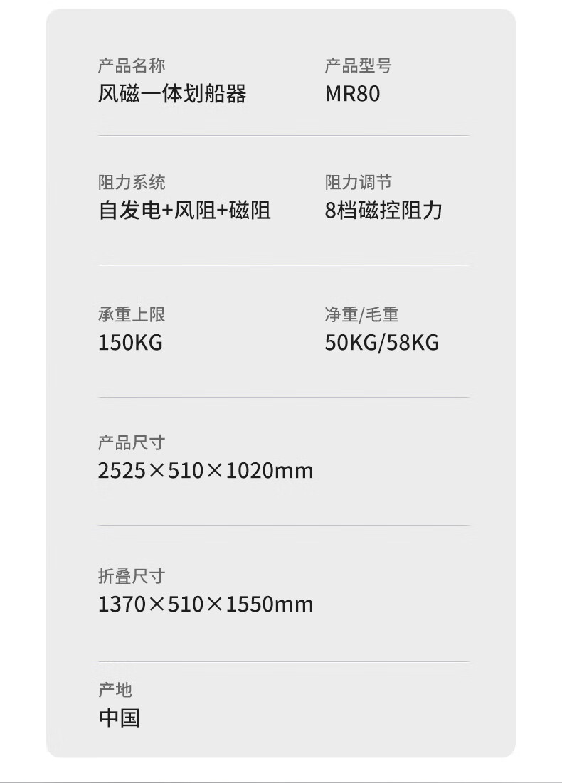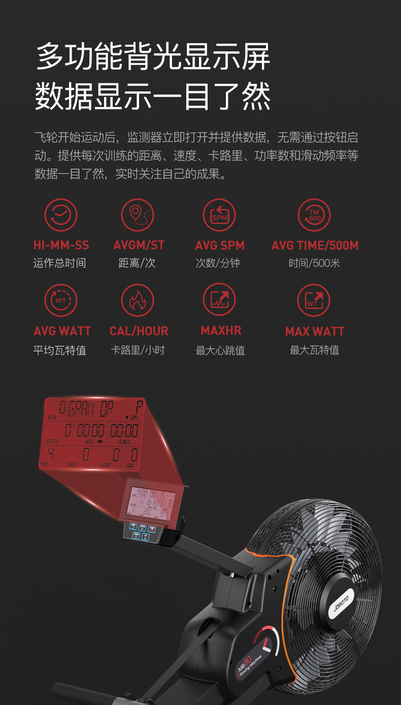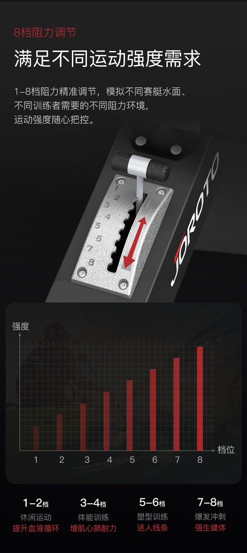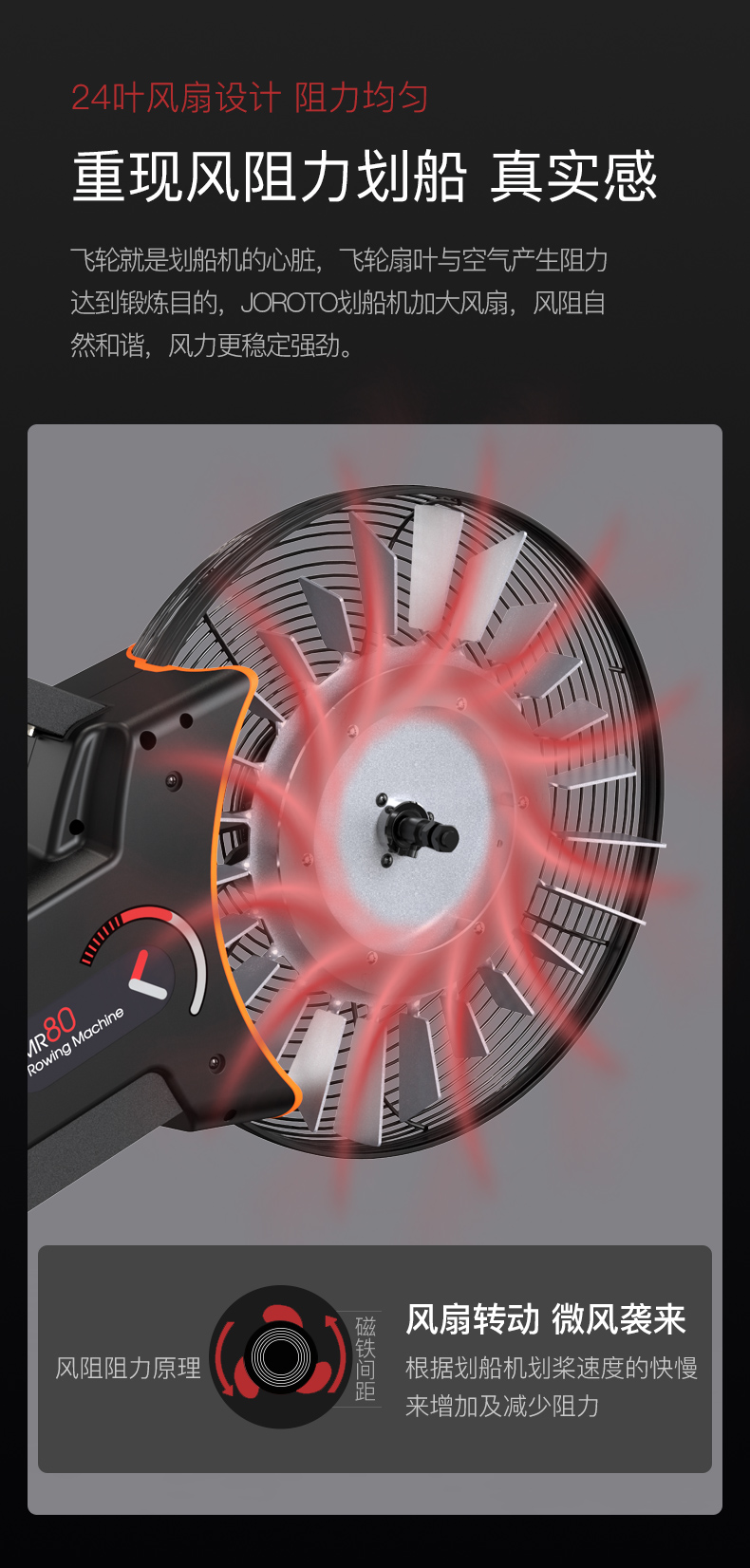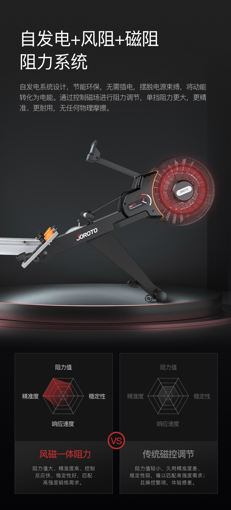 商品名称:捷瑞特JOROTO MR80风磁阻一体划船机(台) 黑色