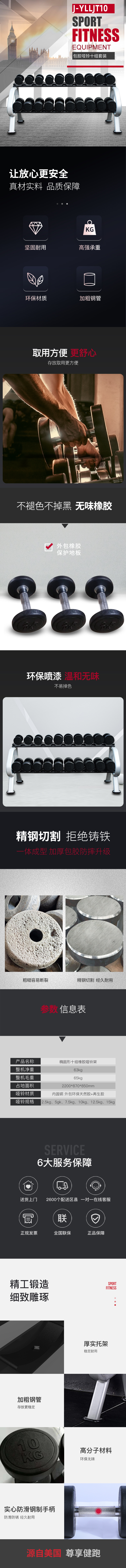 商品名称:捷瑞特JOROTO J-YLTYT10 包胶哑铃十组套装 黑色
