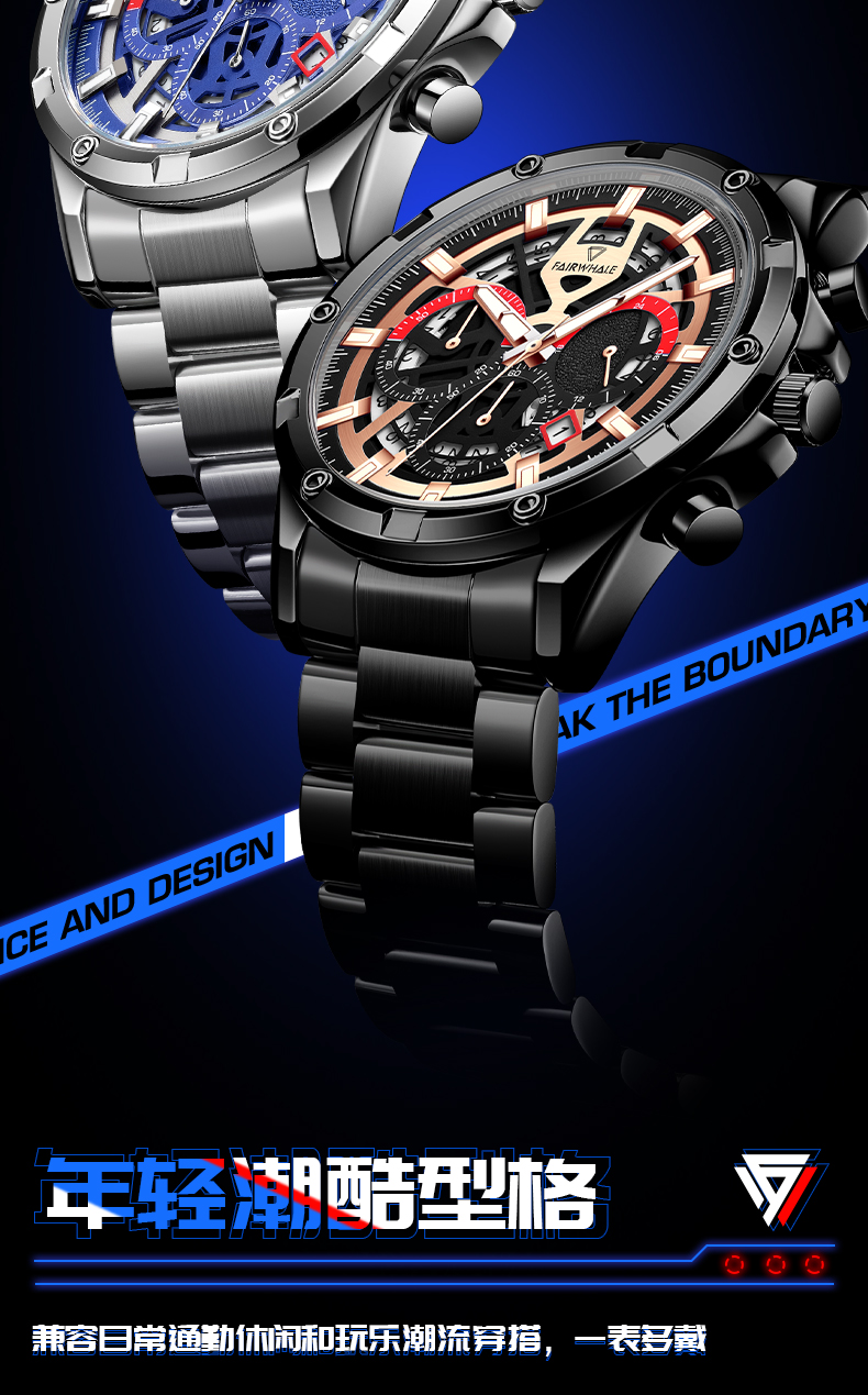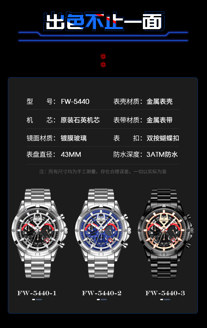 商品名称:马克华菲手表FW-5440 黑壳黑面钢带