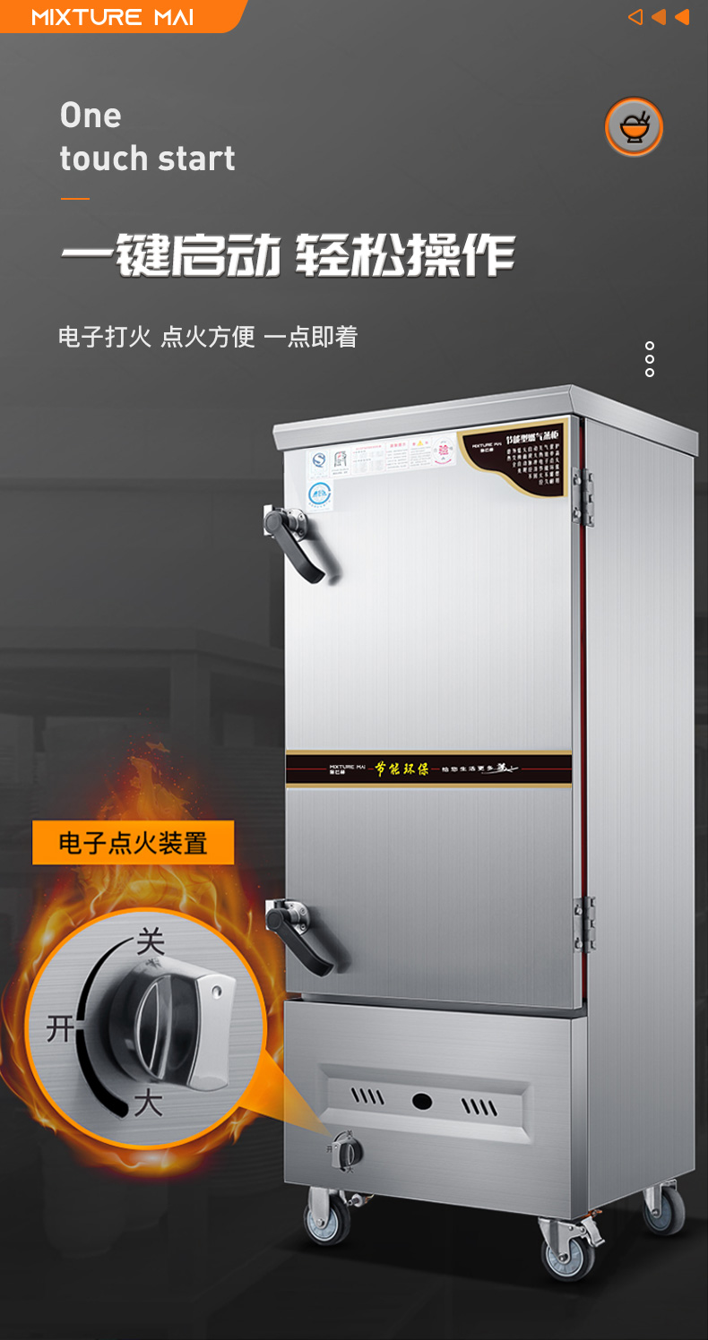 商品名称:脉巴赫 燃气多功能蒸饭柜商用 MBH-RX-24 双门24盘 食堂单位学校米饭包子馒头面食蒸柜车 不锈钢色