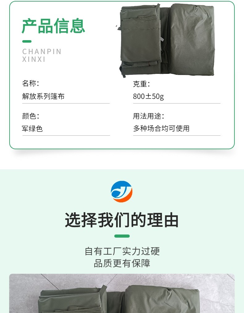 商品名称:瀛军 军车运输车用篷布 解放CA1125J专用 质保三年 军绿色