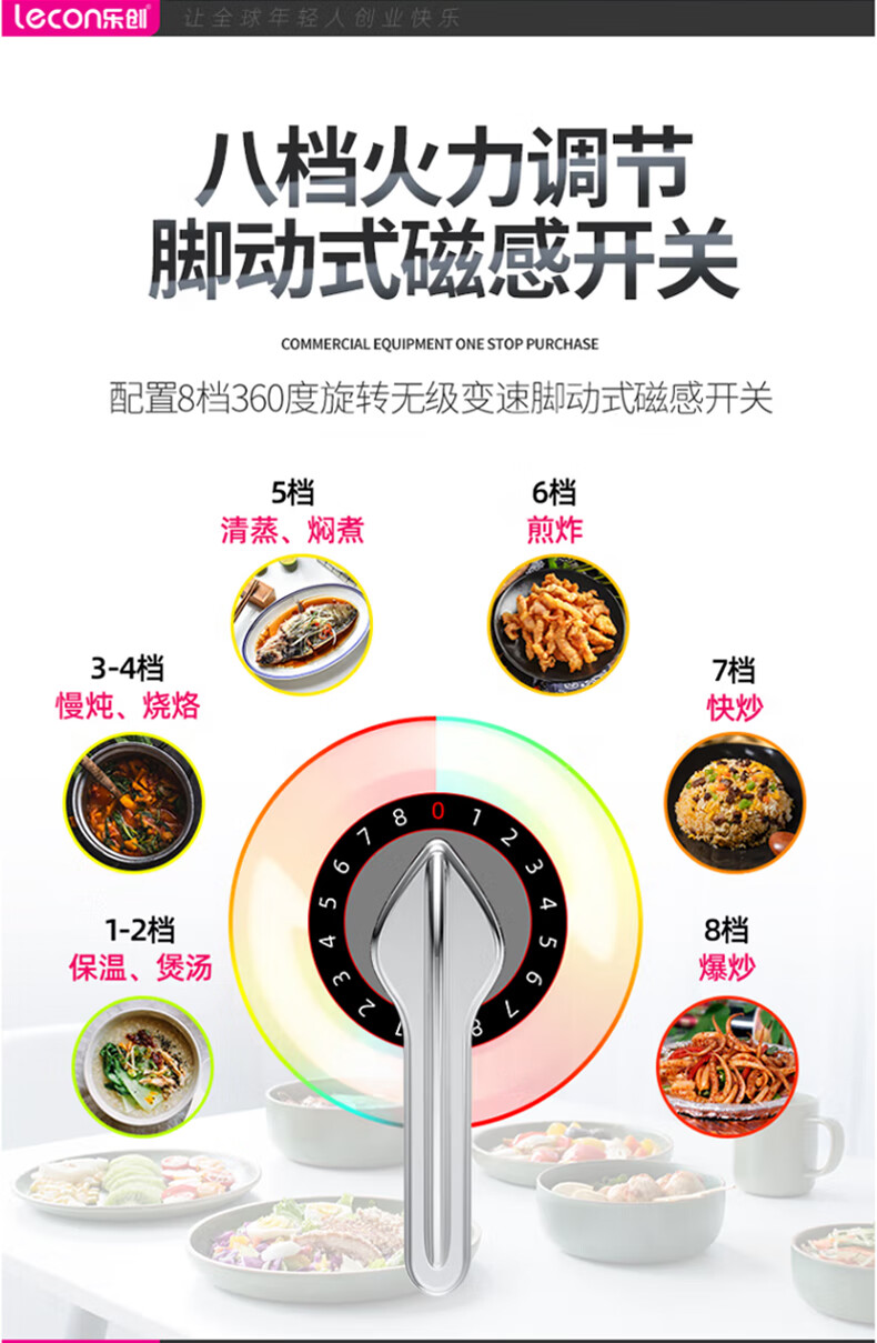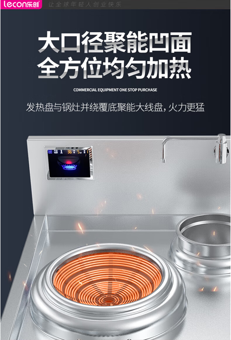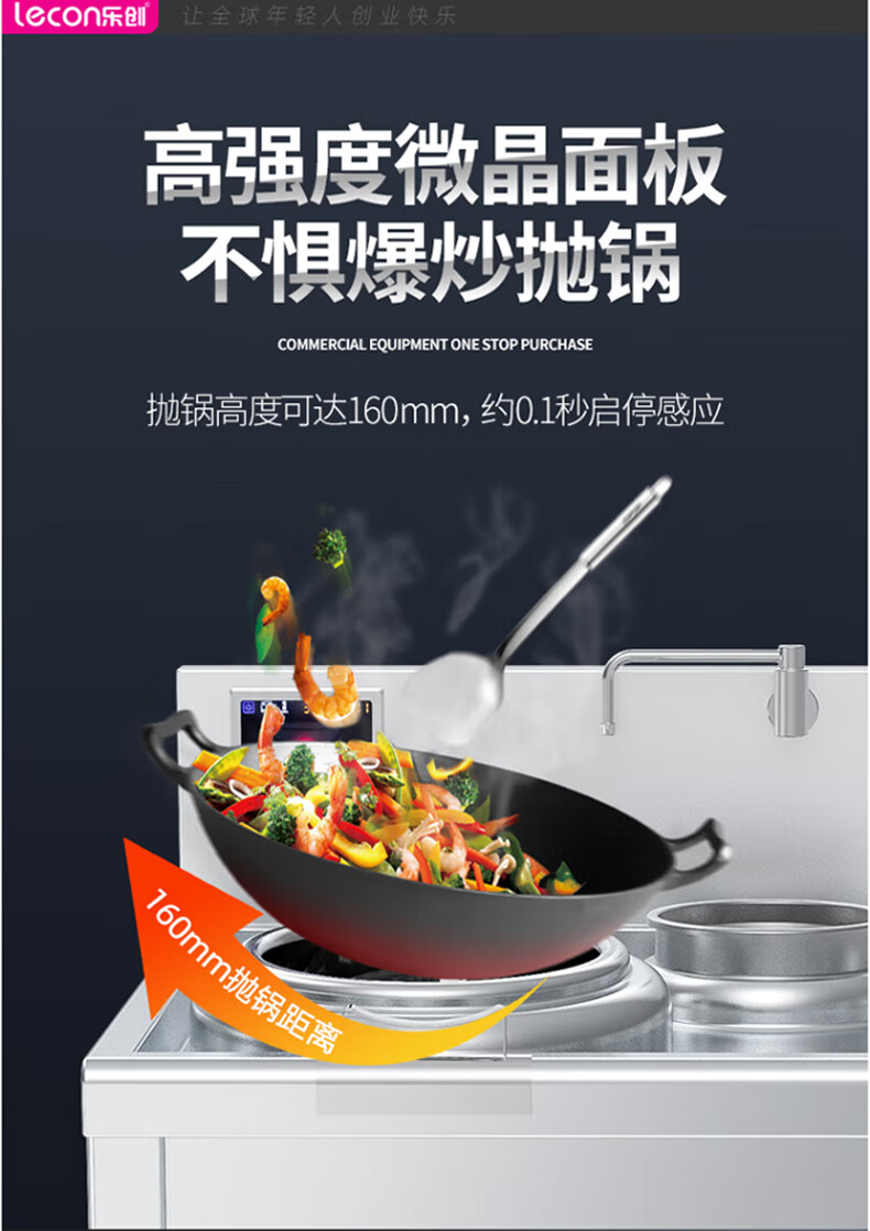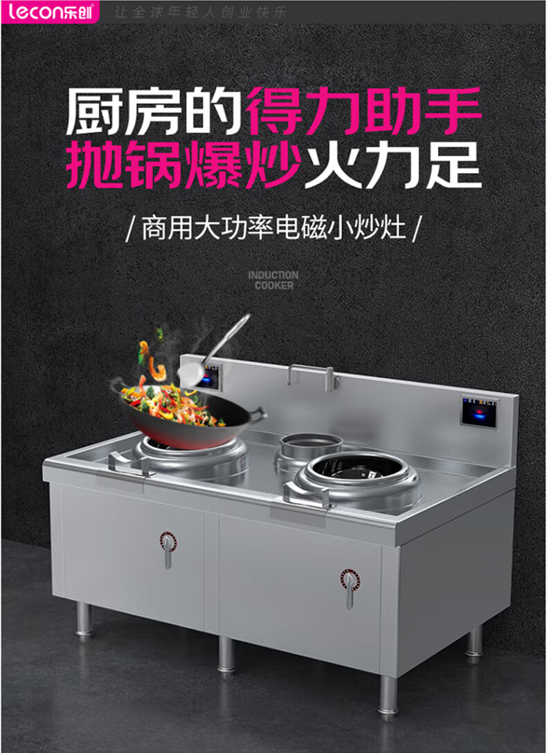 商品名称:乐创(lecon)商用双头单尾小炒灶 15KW*2大功率食堂炒菜电磁灶 201不锈钢工程款 LC-J-SXC400 银色