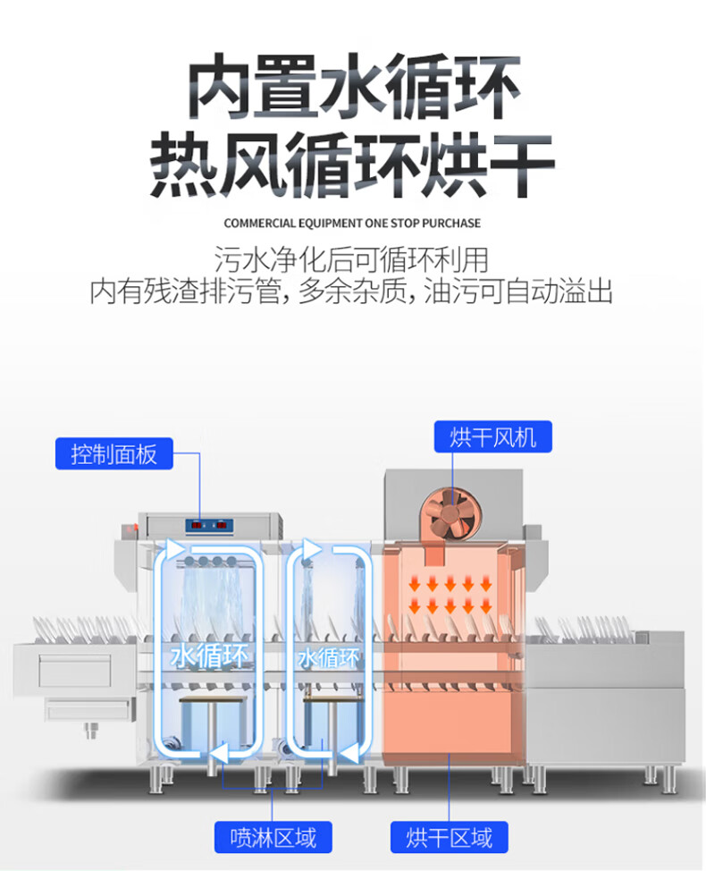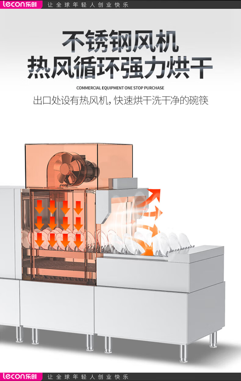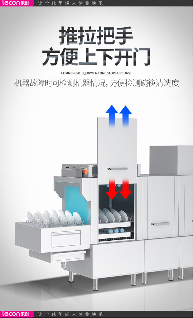 商品名称:乐创(lecon)商用洗碗机 通道式自动化大型酒店食堂刷碗机 双缸单喷淋 LC-J-BD200-2P 白色
