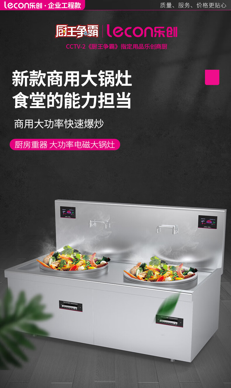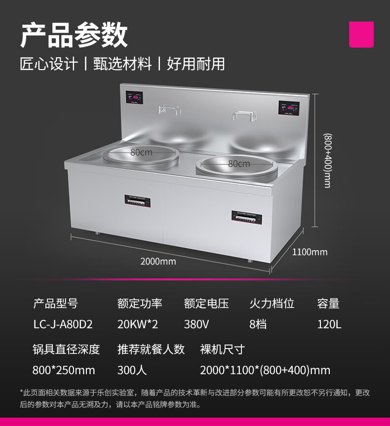 商品名称:乐创(lecon)商用电磁双头大锅灶 锅径800 20KW*2大功率酒店饭堂企业炒灶 380V LC-J-A80D2 银色