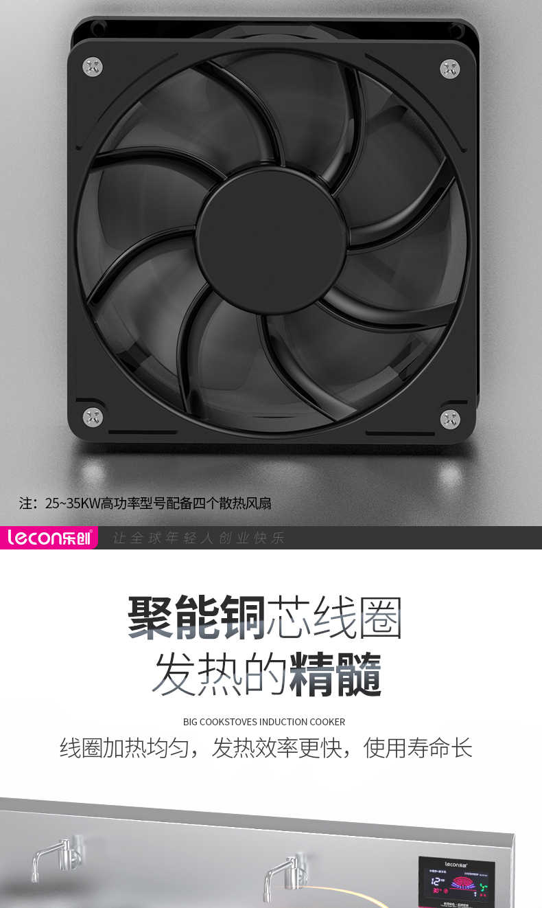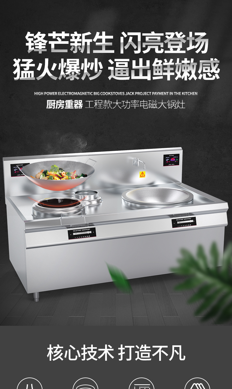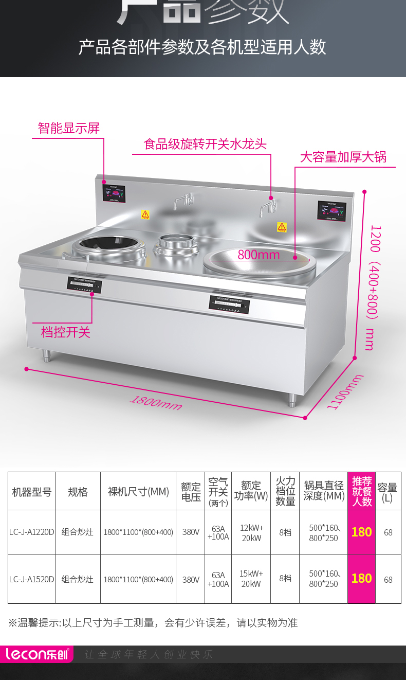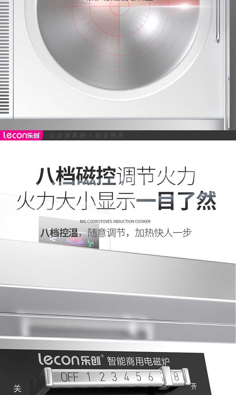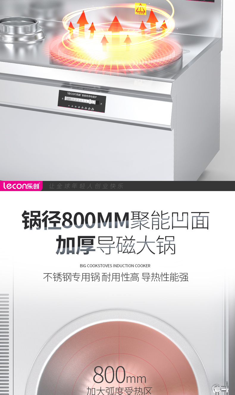 商品名称:乐创(lecon)商用电磁大小组合灶 大锅锅径800 12+20KW大功率酒店饭堂企业炒灶 380V LC-J-A1220D 银色
