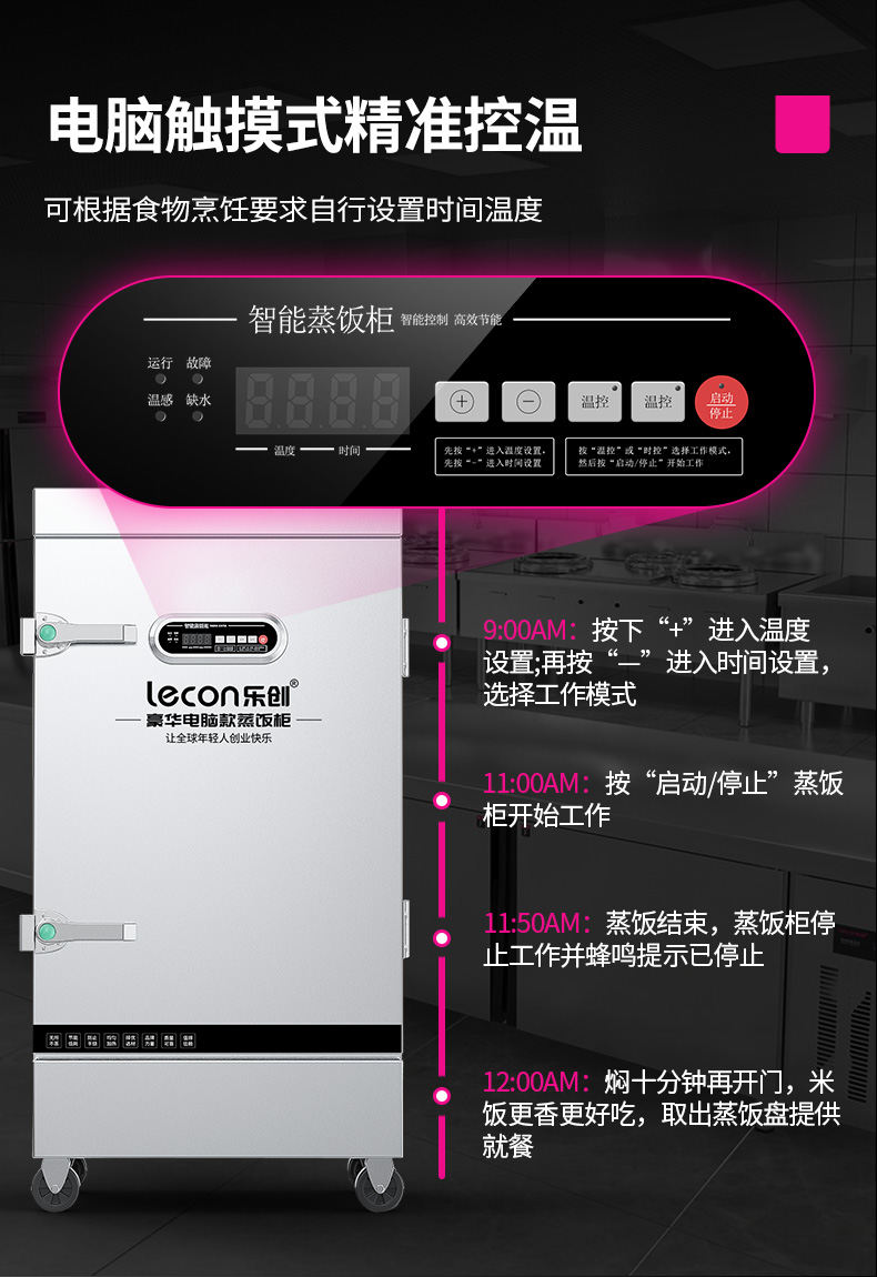 商品名称:乐创(lecon)商用蒸饭柜 学校企业酒店食堂单门蒸箱蒸包炉馒头炉 10盘普通款 LC-J-ZFP10 不锈钢色