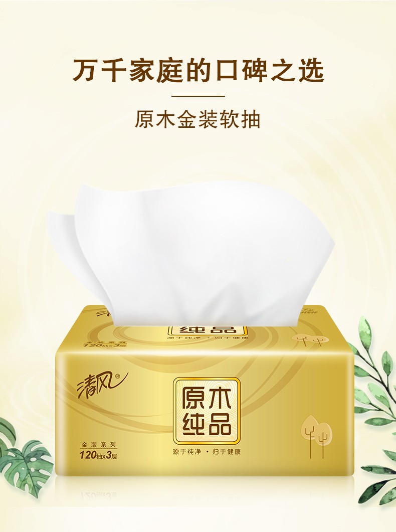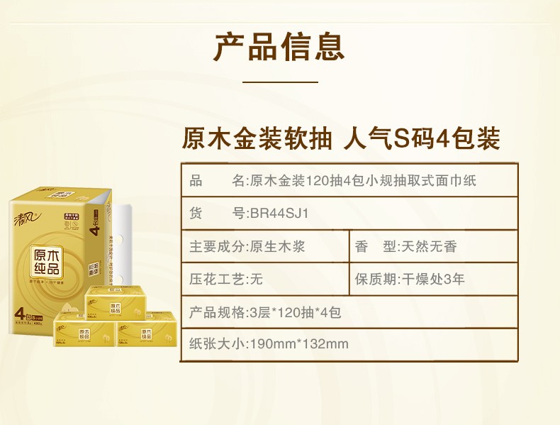 商品名称:清风金装抽纸120抽3层4包BR44SJ-04E 金色