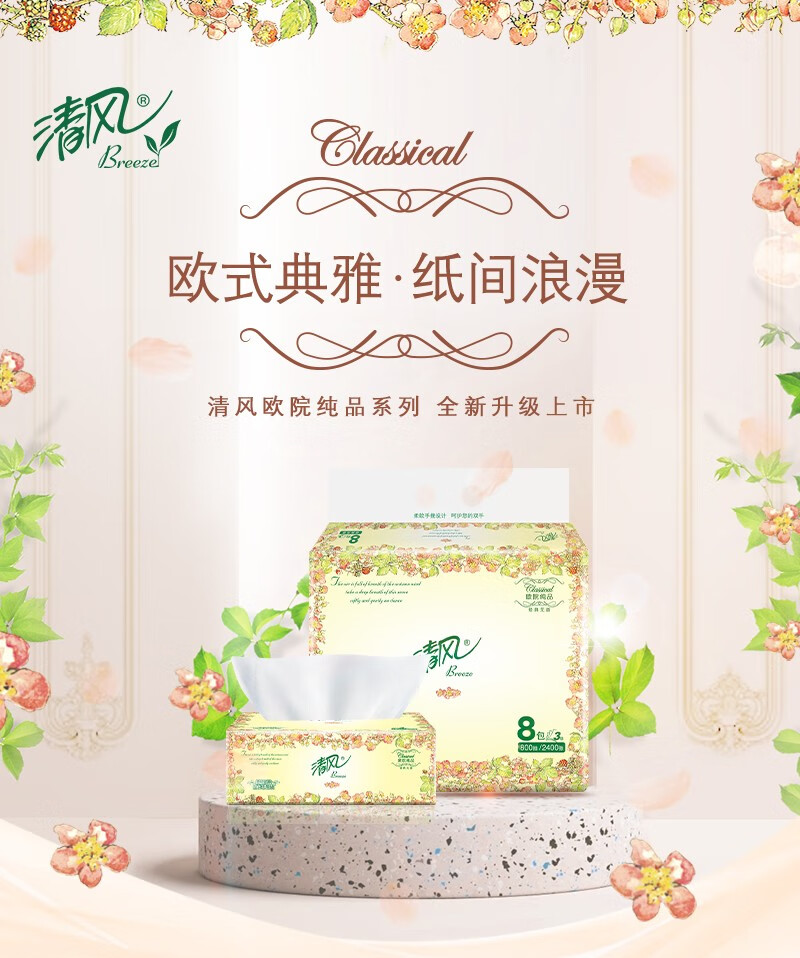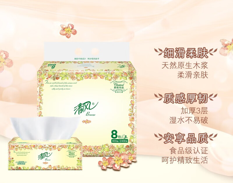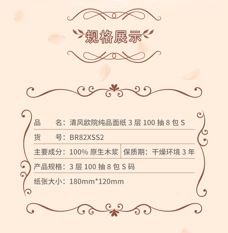 商品名称:清风欧院系列抽纸3层100抽8包DXTQF030(单位:提) 金白色