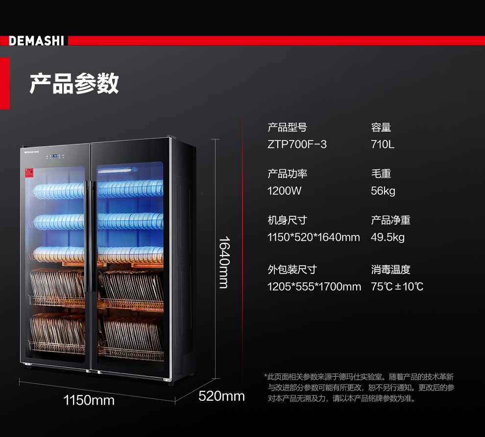 商品名称:德玛仕(DEMASHI) 商用中温消毒柜ZTP700F-3对开中温 黑色