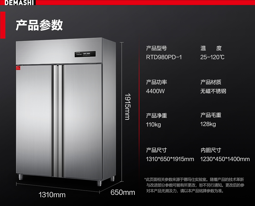 商品名称:德玛仕(DEMASHI) 消毒柜RTD980PD-1双门热风循环 银色