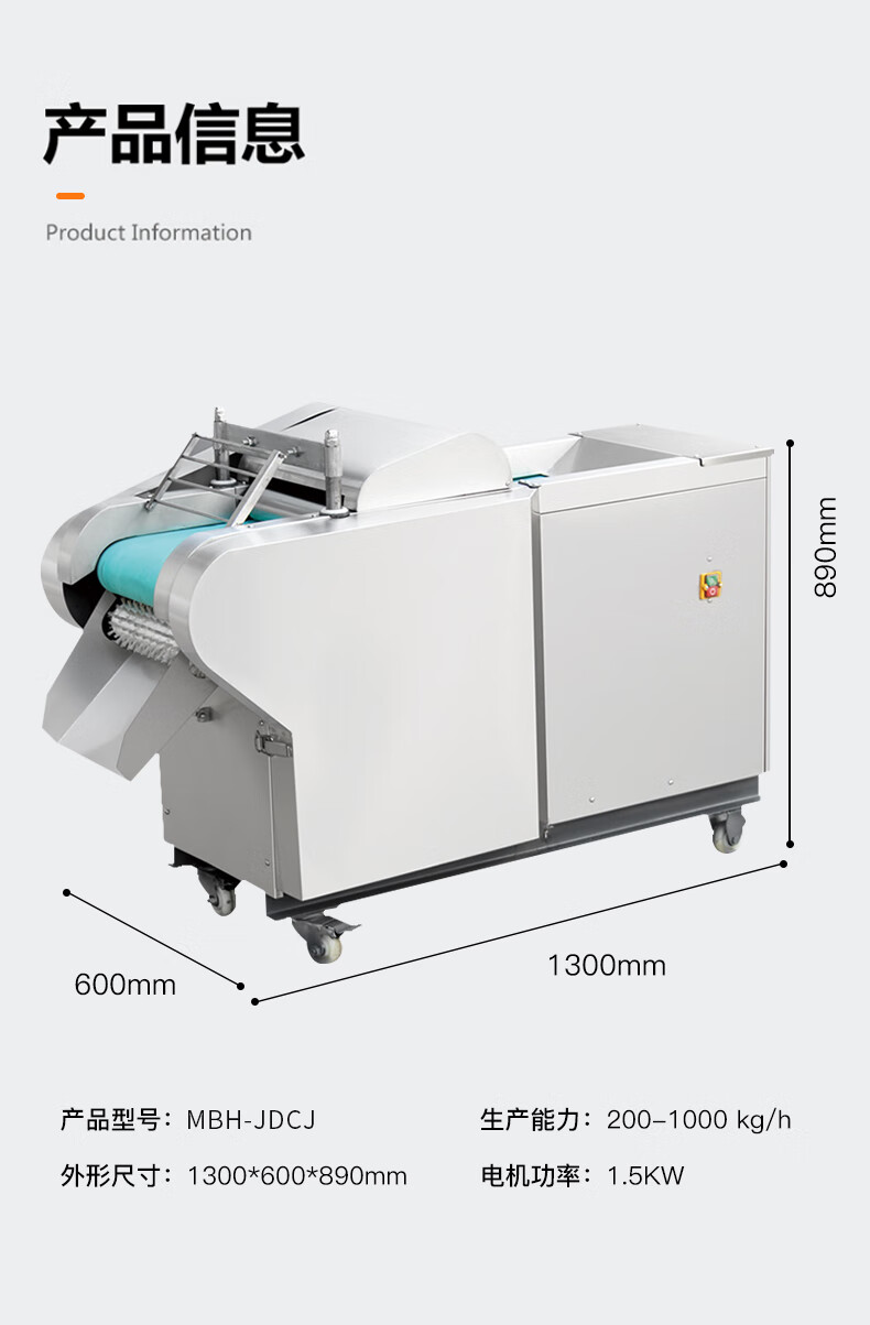 商品名称:脉巴赫切菜机1.5kw 200-1000kg/h 1.3m 豪华升级1000型 MBH-JDCJ 白色