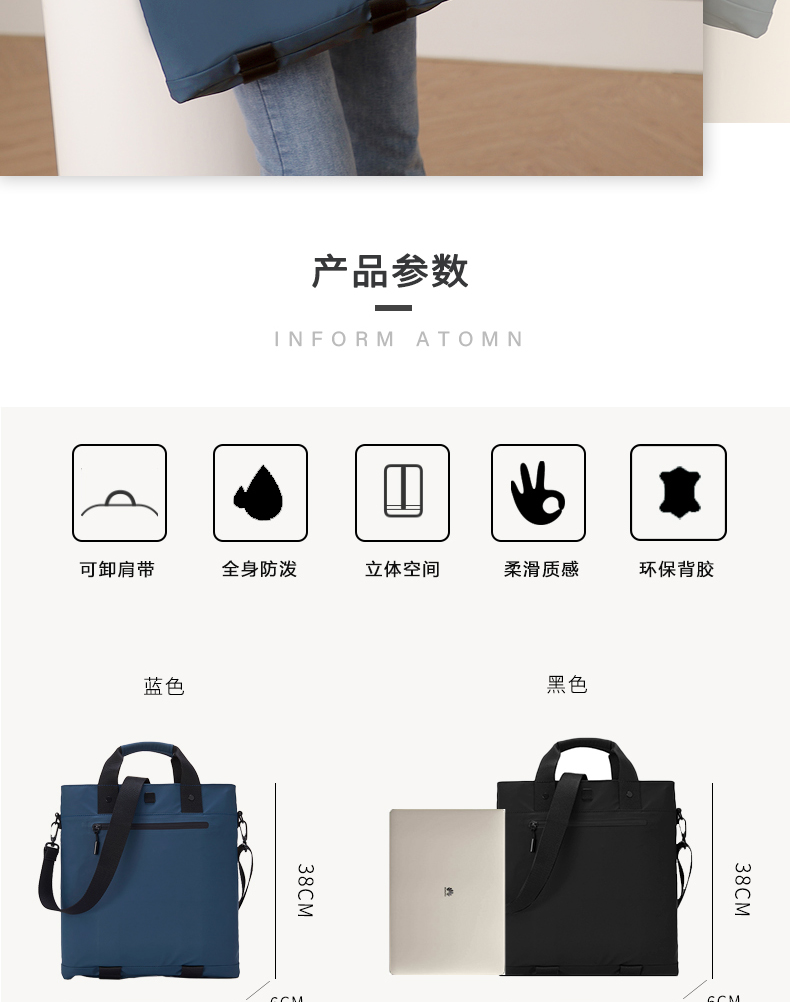 商品名称:乐上 LEXON MAP系列 15寸手提袋-深蓝/黑色 LNE2803 蓝色