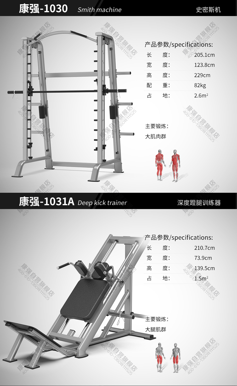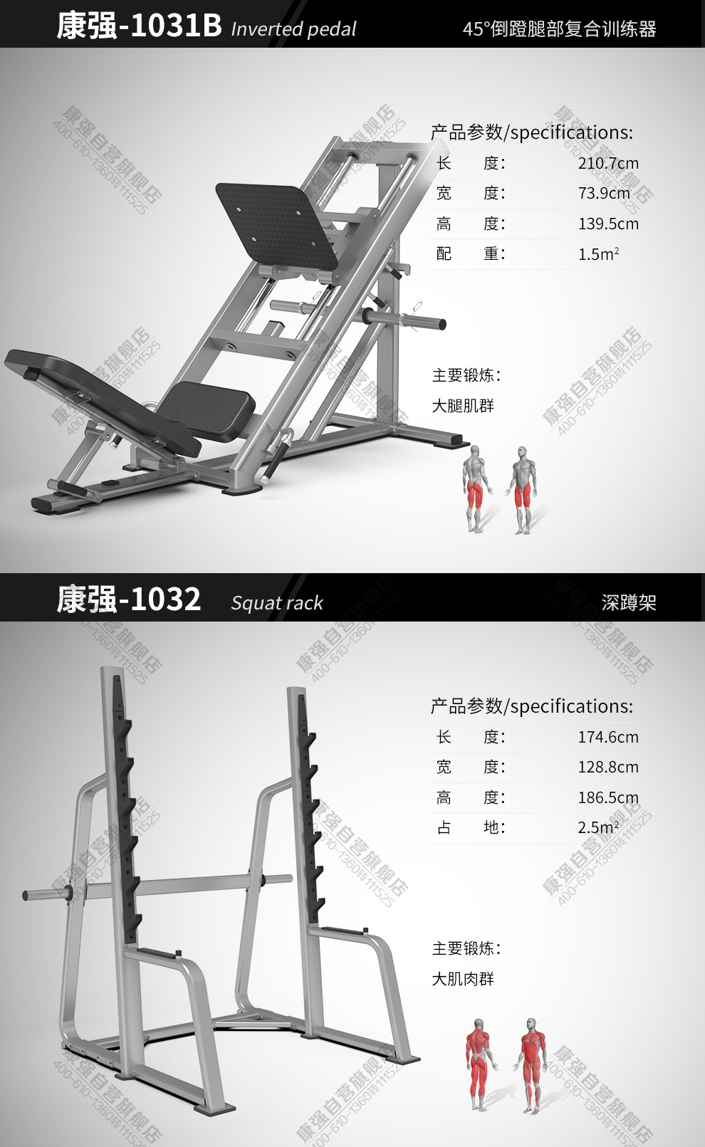 商品名称:康强45度顺蹬斜蹲复合训练器1031B商用综合训练器健身器材健身房专用力量训练器 黑色