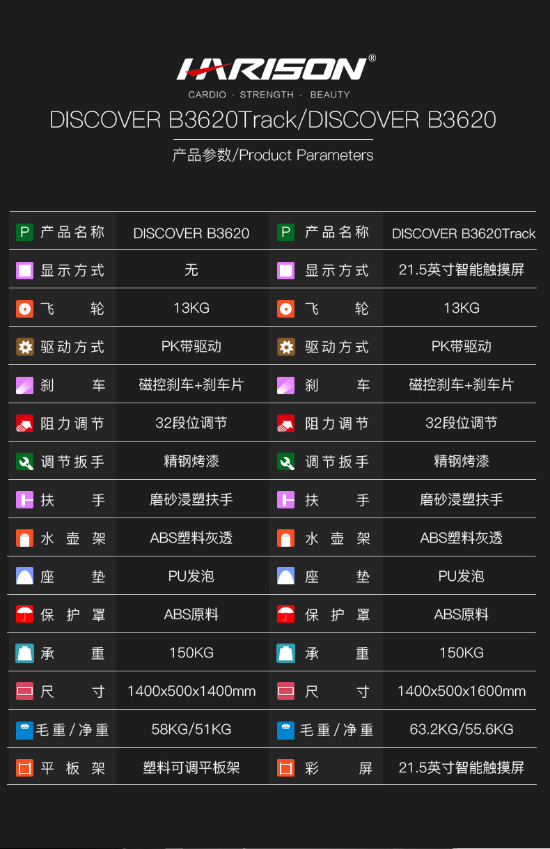 商品名称:汉臣(HARISON) 智能动感单车 家用静音健身车 健身房轻商用自行车 运动健身器材 DISCOVER B3620(不带屏) 黑色
