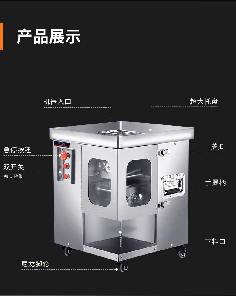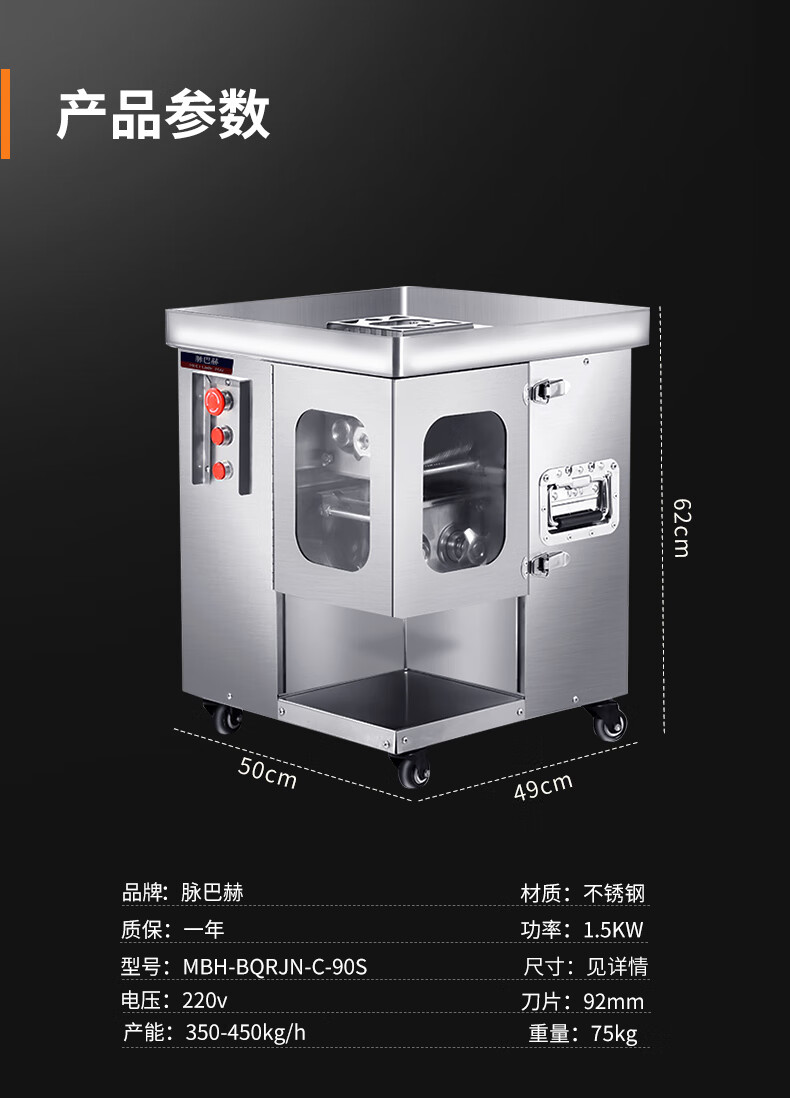 商品名称:脉巴赫切肉机 商用切肉机大功率全自动电动双电机双刀组 不锈钢机身 MBH-BQRJN-C-90S 白色
