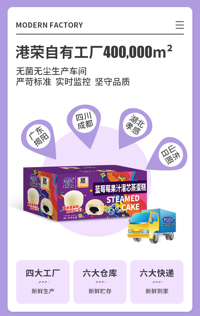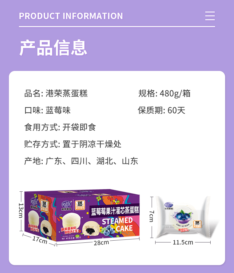 商品名称:港荣蓝莓味蒸蛋糕480g 紫色