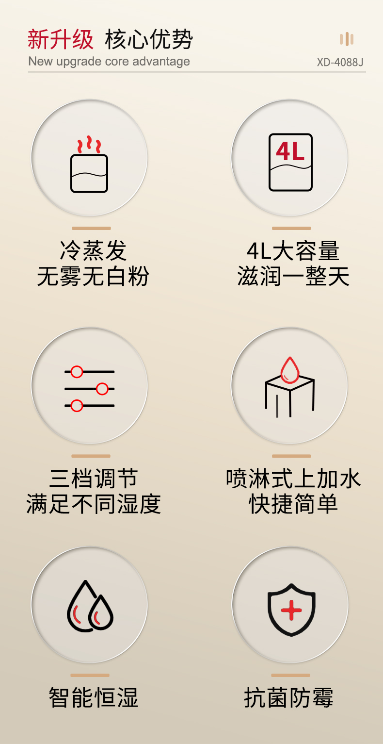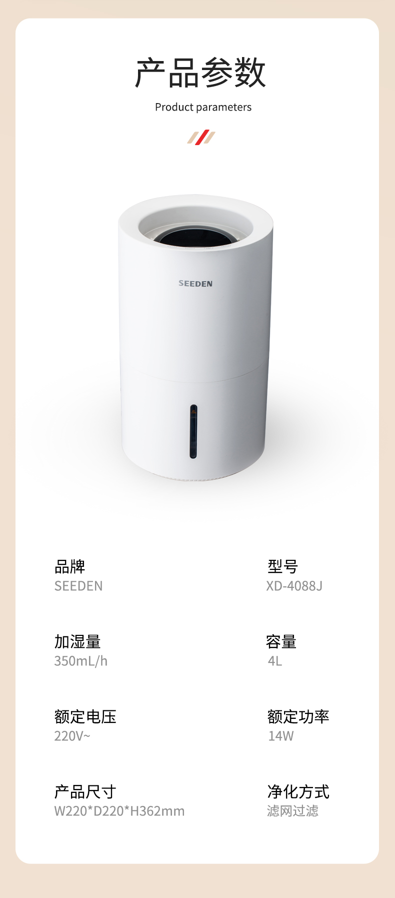 商品名称:西点(SEEDEN)家用加湿器XD-4088J(单位:台) 白色