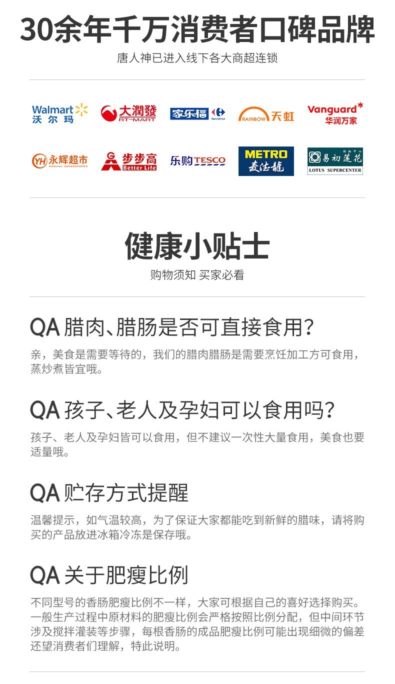 商品名称:唐人神招牌腊肉500g(偏远地区不发货) 金黄