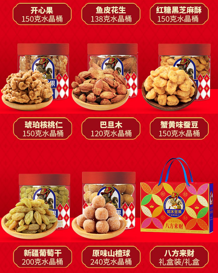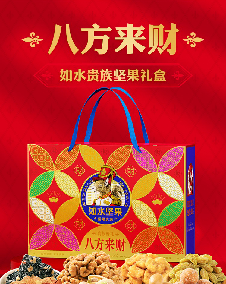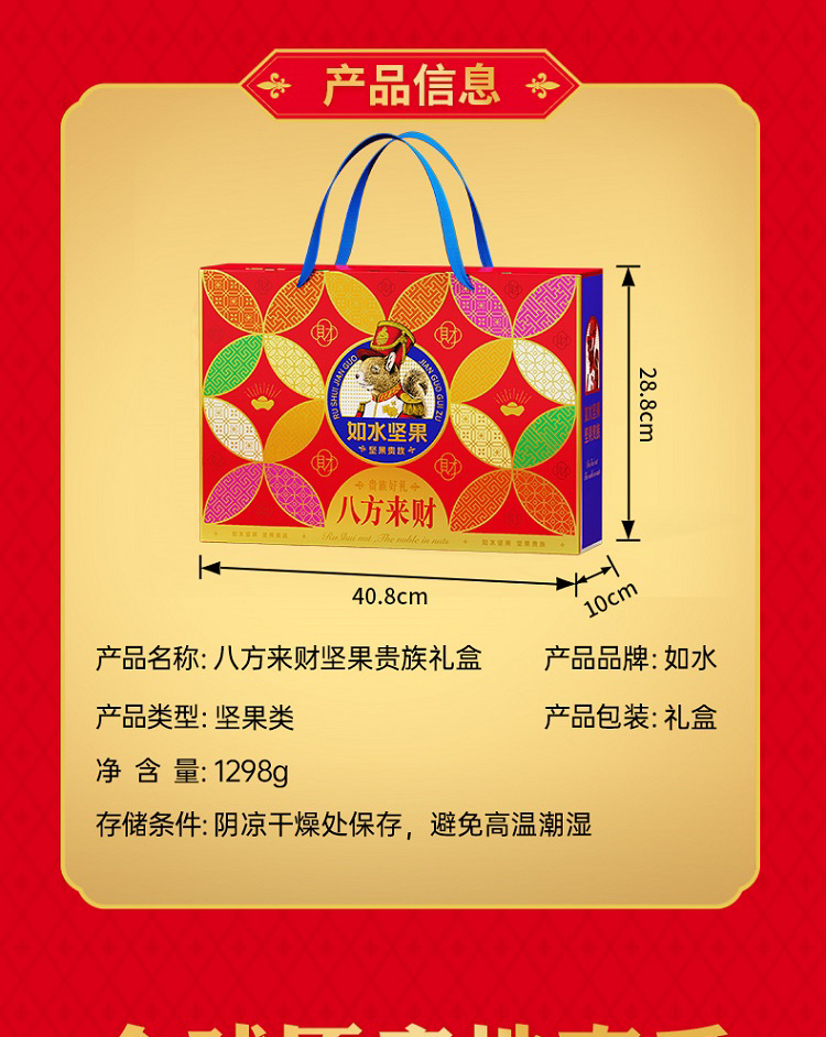 商品名称:如水 八方来财坚果礼盒1298g 年货干果零食礼品 公司企业福利采购 八方来财