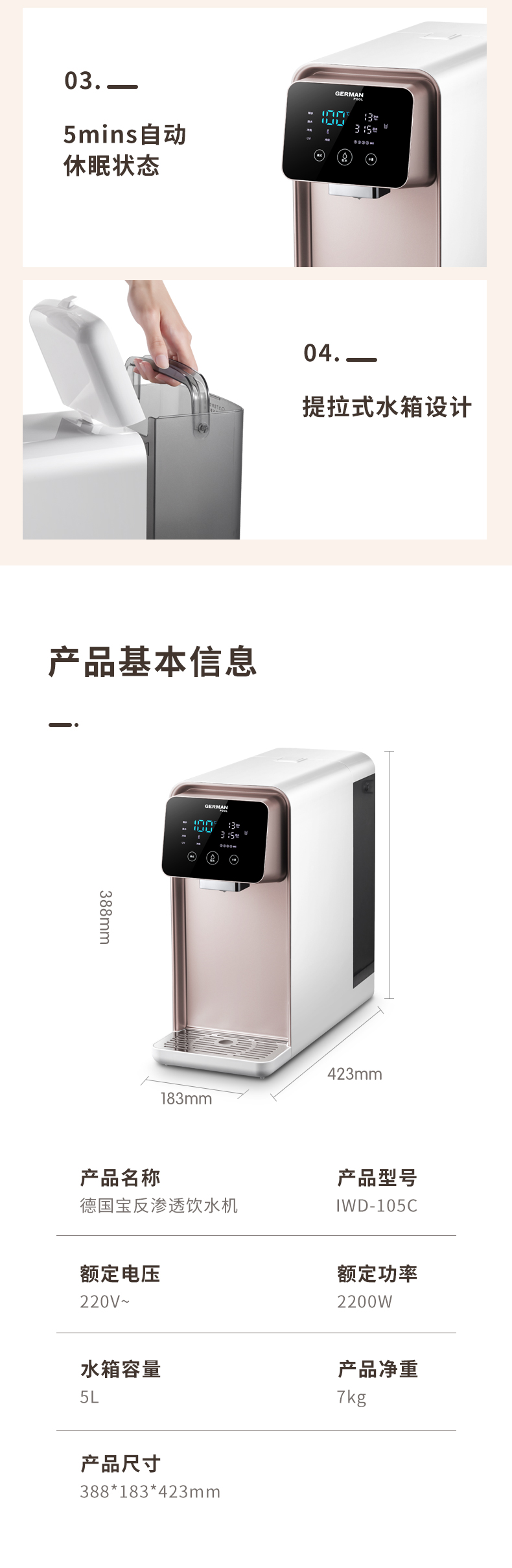 商品名称:德国宝IWD-105C台式净饮机反渗透 家用白色5L容量 白色