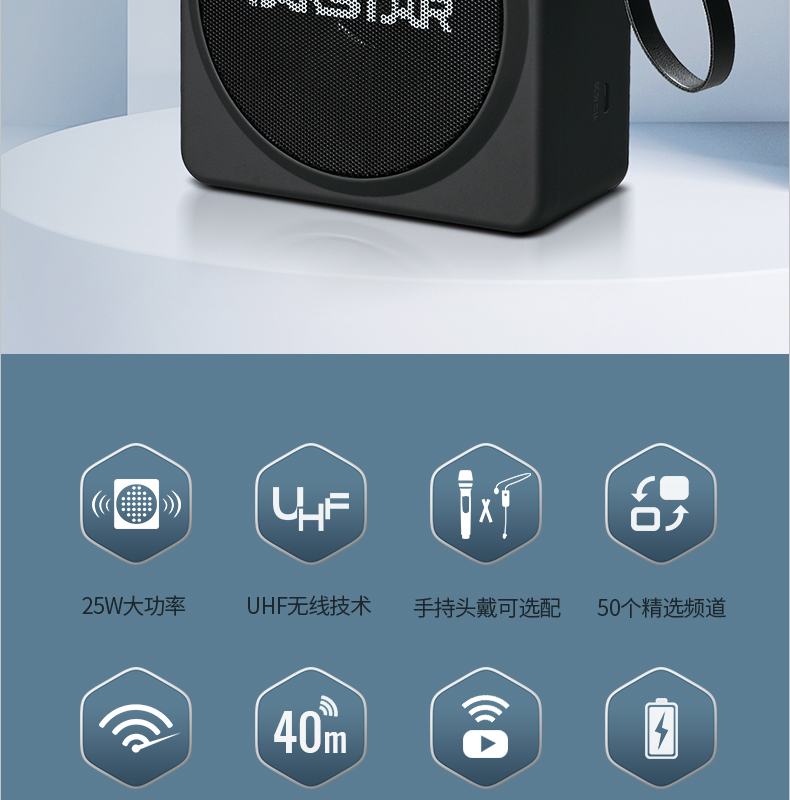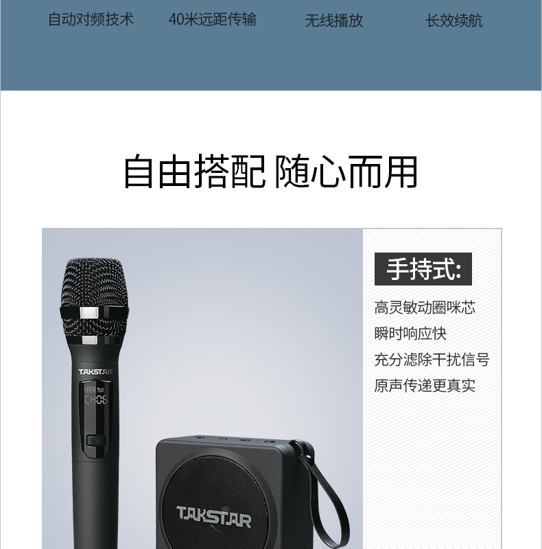 商品名称:得胜(TAKSTAR)E261W 无线手持扩音器 大功率腰挂教学专用教师户外扩音器 手持便携式讲解器 典雅黑 黑色