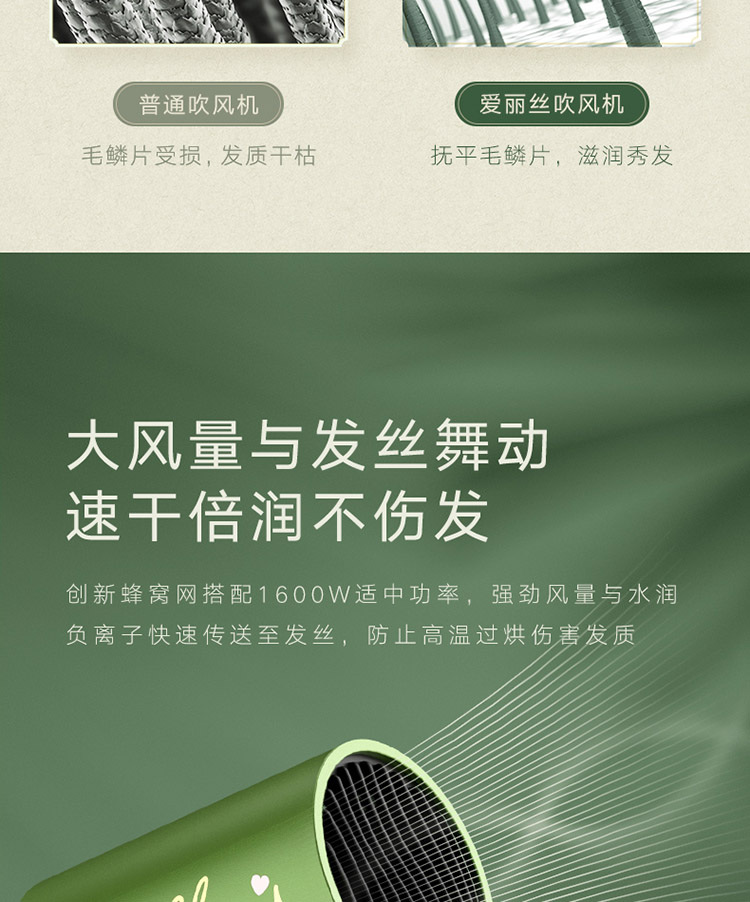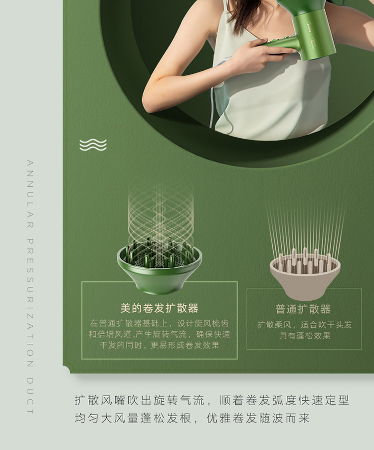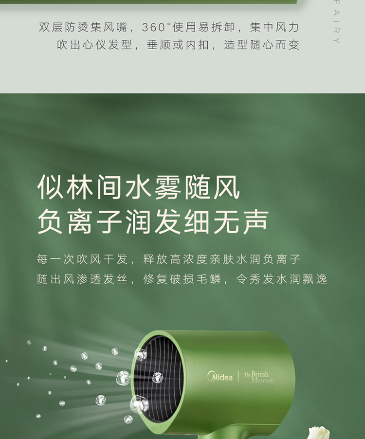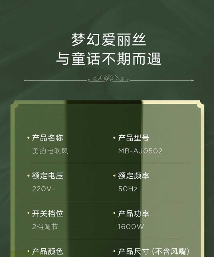 商品名称:美的(Midea)电吹风 1600W MB-AJ0502/个 绿色