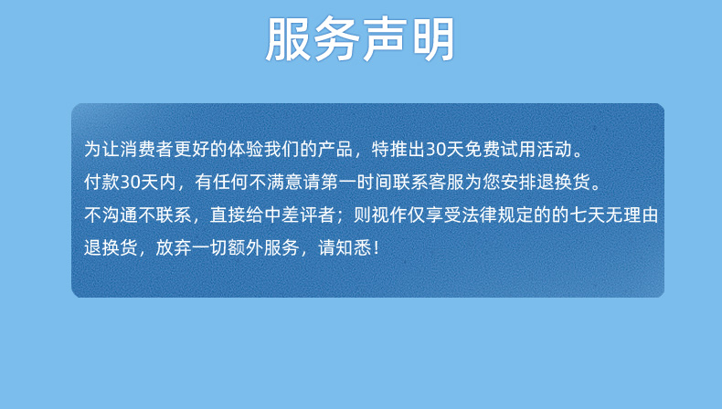 2.签收商品隔日起七日内提交退货申请,2-3天快递员与您联系安排取回商品