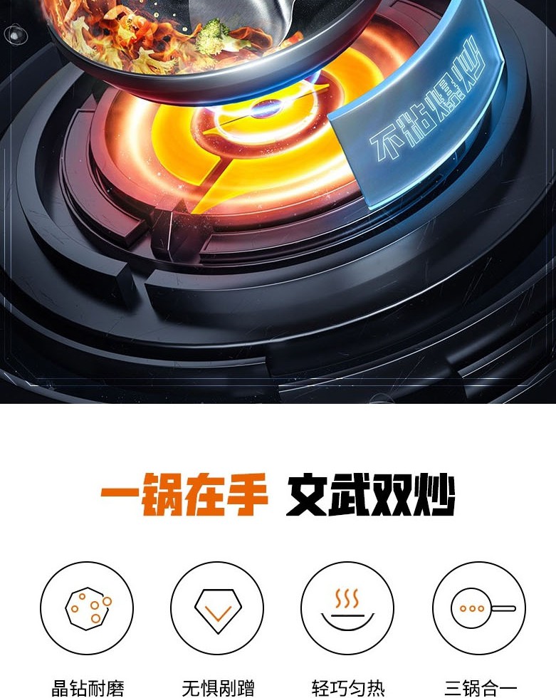 商品名称:九阳Joyoung晶钻2代耐磨炒锅家用燃气灶专用CF32C-CJ992 黑色