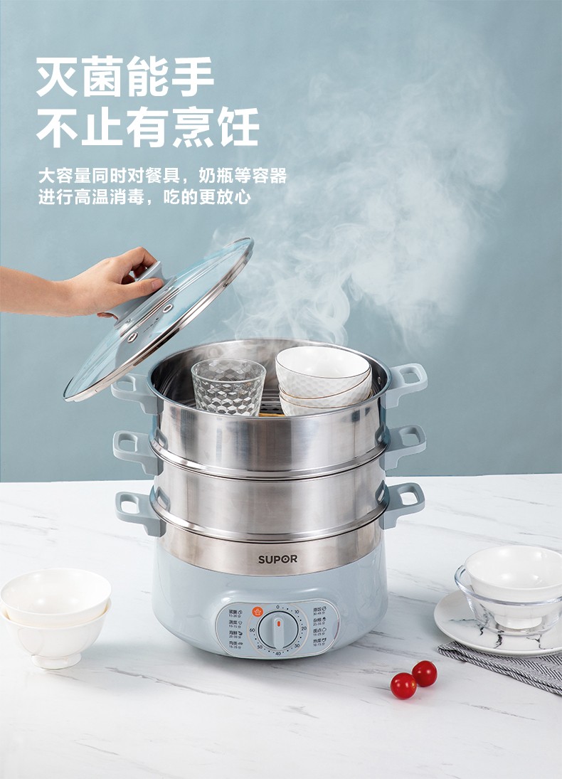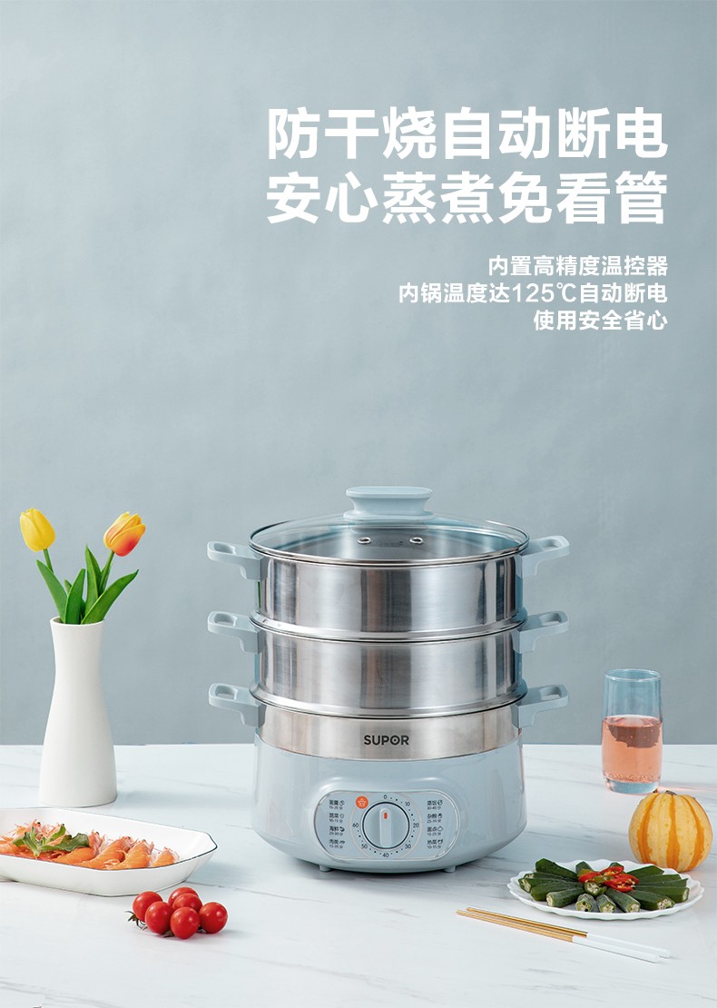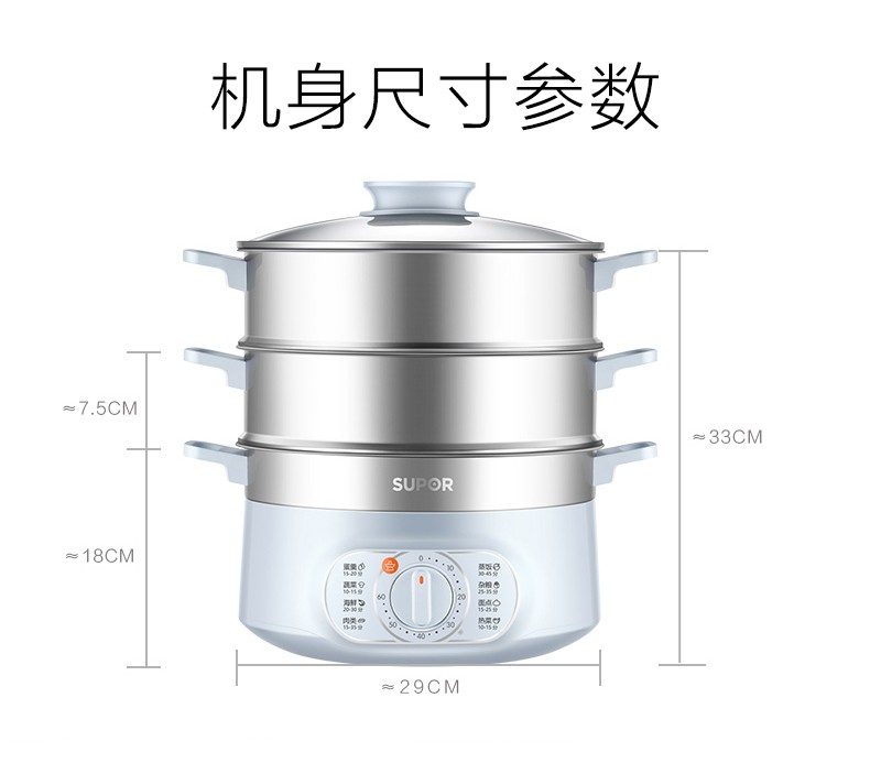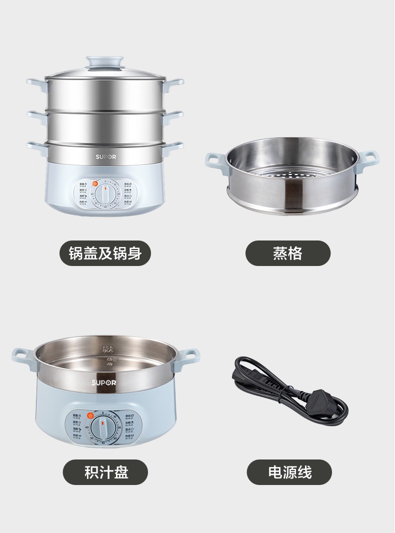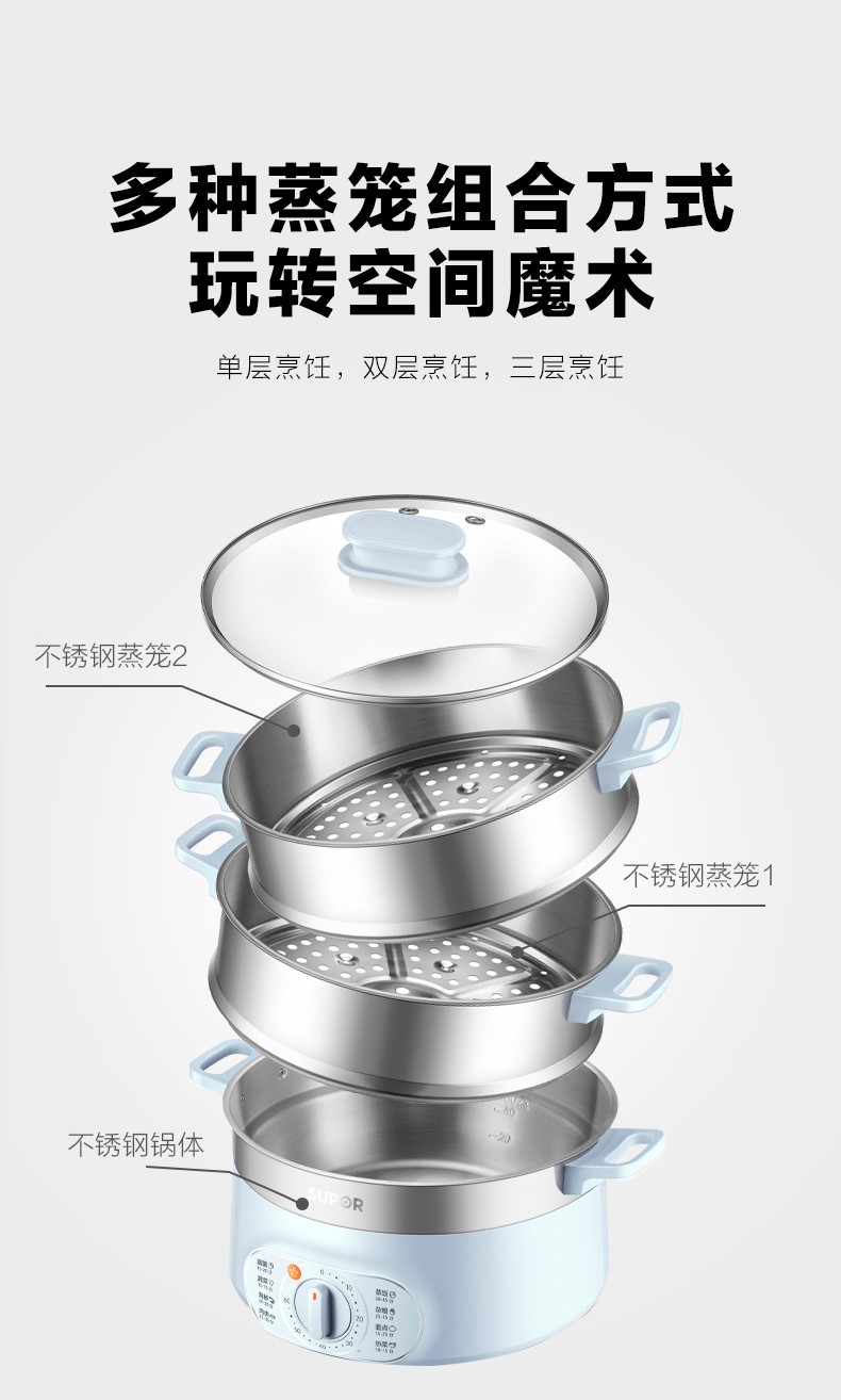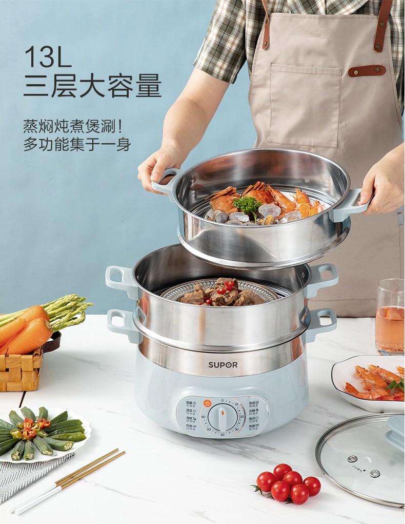 商品名称:苏泊尔 SUPOR多用途锅电蒸锅多功能家用三层13L大容量 可定时 ZN28YK815 浅蓝色